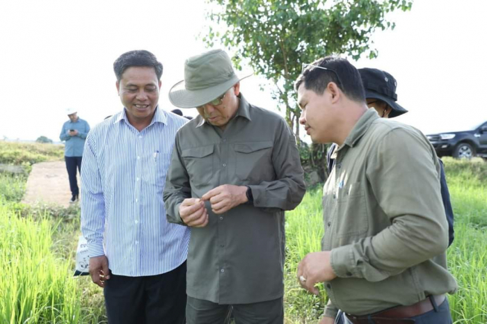 នាព្រឹកថ្ងៃពុធ ១រោច ខែជេស្ឋ ឆ្នាំខាល ចត្វាស័ក ព.ស ២៥៦៦ ត្រូវនឹងថ្ងៃទី១៥ ខែមិថុនា ឆ្នាំ២០២២ ឯកឧត្តមរដ្ឋមន្រ្តី វេង សាខុន ចាកចេញពីខេត្តបាត់ដំបងអញ្ជើញបន្តដំណើរមកខេត្តបន្ទាយមានជ័យ ហើយបានឈានចូលពិនិត្យ តាមដាន និងសាកសួរសុខទុក្ខថ្នាក់ដឹកនាំ មន្រ្តី រាជការ បុគ្គលិក កម្មករ ដែលកំពុងបម្រើការនៅស្ថានីយផលិតពូជស្រូវទួលសំរោង។ ឆ្លៀតយកពេលខ្លីជួបសំណេះសំណាលជាមួយមន្រ្តីជើងចាស់ (ក្លាយជាព្រឹទ្ធាចារ្យ តាំងពីឆ្នាំ ១៩៧៩) មន្រ្តីថ្មី និងមន្រ្តីជាប់កិច្ចសន្យា ឯកឧត្តមរដ្ឋមន្ត្រីសាកសួរសុខទុក្ខ បញ្ហាជីវភាព និងសកម្មភាពការងារស្នូល (ផលិតពូជស្រូវចម្រុះ) បានកោតសរសើរ និងវាយតម្លៃខ្ពស់ចំពោះទឹក ចិត្តតស៊ូ លះបង់គ្រប់បែបយ៉ាង ចូលរួមថែរក្សាការពារស្ថានីយដែលជាទ្រព្យសម្បត្តិរដ្ឋ ពិសេសយកចិត្តទុកដាក់ប្រើទាំងចំណេះដឹង និងបទពិសោធន៍ ផលិតពូជស្រូវផ្គត់ផ្គង់ឲ្យសេចក្តីត្រូវការប្រជាកសិករនៅទូទាំងប្រទេស។ ចុះពិនិត្យវាលស្រែពេញដោយដាំណាំស្រូវកំពុងដុះលូតលាស់យ៉ាងល្អ ពិនិត្យសកម្មភាពបក់ ផ្លុំសំអាត សម្ងួត និងវេចខ្ចប់គ្រាប់ពូជស្រូវរក្សាទុកក្នុងឃ្លាំងបានយ៉ាងត្រឹមត្រូវតាមបច្ចេកទេស ដើម្បីរក្សាគុណភាព (ភាគរយដំណុះខ្ពស់) ឯកឧត្តមរដ្ឋមន្ត្រីបានថ្លែងអំណរគុណ និងវាយតម្លៃខ្ពស់លើស្មារតីទទួលខុសត្រូវខ្ពស់ចំពោះថ្នាក់ដឹកនាំ មន្រ្តីគ្រប់លំដាប់ថ្នាក់ ដែលមានឆន្ទ:លះបង់ ស៊ូទ្រាំគ្រប់ឧបសគ្គដើម្បីធានាការផលិតគ្រាប់ពូជស្រូវមានគុណភាព។ ជាមួយស្មារតីទទួលខុសត្រូវលើការងារបច្ចេកទេសផលិតនេះ ឯកឧត្តមរដ្ឋមន្ត្រីបានគាំទ្រ និងលើកទឹកចិត្តថ្នាក់ដឹកនាំ មន្រ្តី បុគ្គលិក កម្មករ ត្រូវបន្តសកម្មភាពផលិតគ្រាប់ពូជស្រូវឲ្យកាន់តែមានគុណភាពខ្ពស់ និងបង្កើនបរិមាណផលិត ឆ្លើយតបឲ្យបានសមស្របតាមបរិបទនៃសេចក្តីត្រូវការគ្រាប់ពូជស្រូវដែលកំពុង តែខ្វះខាតនៅតាមតំបន់មួយចំនួន ដើម្បីចូលរួមស្តារ និងជំរុញល្បឿនបង្កបង្កលនផលឲ្យទាន់ ដើមរស្សា។ ឯកឧត្តមរដ្ឋមន្ត្រីបានណែនាំ និងជំរុញឲ្យអគ្គនាយកដ្ឋានកសិកម្ម នាយកដ្ឋានដំណាំ ស្រូវ មន្ទីរកសិកម្ម រុក្ខាប្រមាញ់ និងនេសាទ និងស្ថានីយផលិតគ្រាប់ពូជស្រូវ តាមរយ:ប្រព័ន្ធស្បៀងបម្រុងជាតិ ត្រូវត្រៀមគ្រាប់ពូជស្រូវឲ្យបានគ្រប់គ្រាន់ សម្រាប់យកទៅចែកជូនប្រជាកសិករ ដែលទទួលរងផលប៉ះពាល់ដោយសារទឹកភ្លៀងនៅដើមរវស្សាកន្លងមក។ តាមរបាយការណ៍របស់លោក អ៊ឹង ស៊ីណា ប្រធានស្ថានីយ បានឲ្យដឹងថា បច្ចុប្បន្នស្ថានីយមានស្រូវពូជស្តុកក្នុងឃ្លាំងចំនួន ២៥០តោន (រៀបចំច្រកបាវរួចរាល់)។ ក្នុងស្ថានីយ ផ្ទៃដីចំនួន ៤៧ហត ដំណាំស្រូវពូជកំពុងចេញផ្លែ ដាក់គ្រាប់ ហើយគ្រោងនឹងប្រមូលផលបានជាមធ្យមចំនួន ១៥០ នៅក្នុងខ