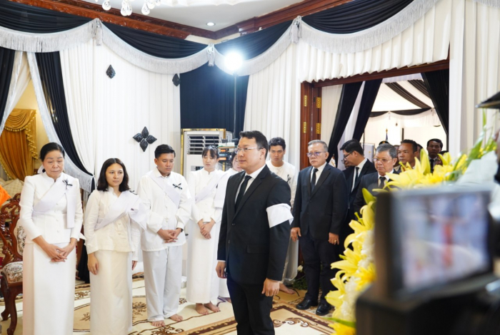ព្រឹកថ្ងៃទី២៤ ខែតុលា ឆ្នាំ២០២៣ ឯកឧត្តមរដ្ឋមន្ត្រី ឌិត ទីណា បានដឹកនាំគណៈប្រតិភូនៃក្រសួងកសិកម្ម រុក្ខាប្រមាញ់ និងនេសាទ អញ្ជេីញចូលរួមគោរពវិញ្ញាណក្ខន្ធ ឯកឧត្តម នាយឧត្តមសេនីយ៍ ប្រាក់ វណ្ណឌី នាយករងខុទ្ទកាល័យ សម្តេចមហាបវរធិបតី នាយករដ្ឋមន្ត្រី។
