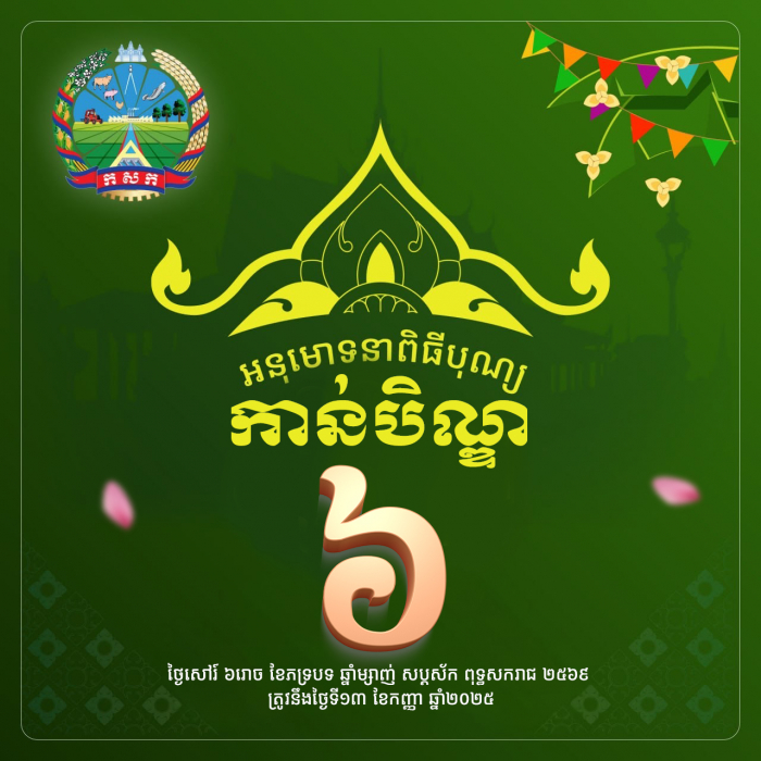 សូមអនុមោទនា ពិធីកាន់បិណ្ឌ ៦ ថ្ងៃសៅរ៍ ៦រោច ខែភទ្របទ ឆ្នាំម្សាញ់ សប្តស័ក ពុទ្ធសករាជ ២៥៦៩ ត្រូវនឹងថ្ងៃទី១៣ ខែកញ្ញា ឆ្នាំ២០២៥