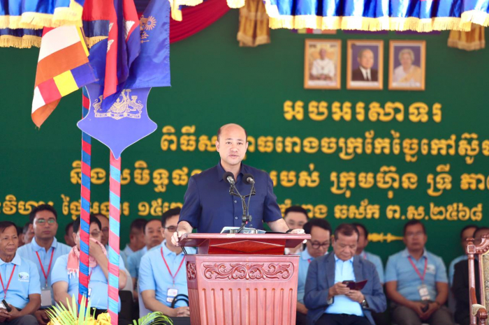 ថ្លែងទៅកាន់អង្គពិធី ឯកឧត្តមរដ្ឋមន្រ្តី មានកិត្តិយសយ៉ាងក្រៃលែងដែលបានចូលរួម “ដាក់សម្ពោធរោងចក្រកែច្នៃជ័រកៅស៊ូ និងបើកមុខចៀរជ័រកៅស៊ូថ្មី” នៅក្រុមហ៊ុនទ្រីភាព អិមផត អិចផត ឯ.ក ក្រោមអធិបតីភាព ឯកឧត្តម ហ៊ុន ម៉ានី ឧបនាយករដ្ឋមន្រ្តី រដ្ឋមន្រ្តីក្រសួងមុខងារសាធារណៈ និងជាតំណាងដ៏ខ្ពង់ខ្ពស់ សម្តេចមហាបវរធិបតី ហ៊ុន ម៉ាណែត នាយករដ្ឋមន្រ្តី។