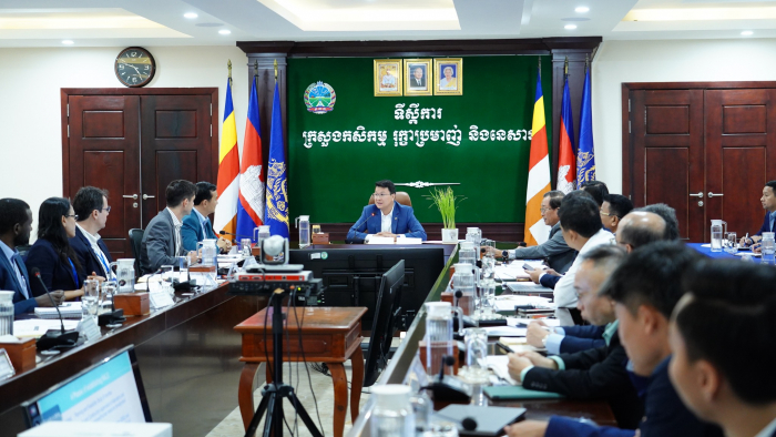 ឯកឧត្ដមរដ្ឋលេខាធិការ ឱម គឹមស៊ា អញ្ជើញដឹកនាំក្រុម​ការងារ​ ប្រជុំពិភាក្សាពីការរៀបចំពិព័រណ៍​ផលិត​ផលកសិកម្ម ក្នុងព្រះ​រាជពិធីច្រត់ព្រះនង្គ័ល ឆ្នាំ២០២៦ នៅ​ខេត្តព្រៃវែង