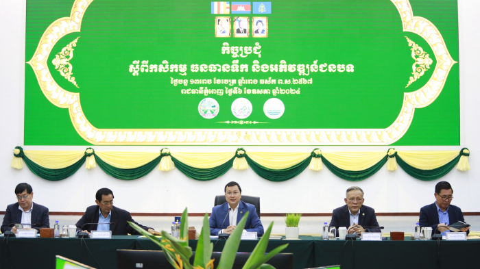 នៅព្រឹកថ្ងៃចន្ទ ទី៦ ខែឧសភា ឆ្នាំ២០២៤ ឯកឧត្តម ឌិត ទីណា រដ្ឋមន្ដ្រីក្រសួងកសិកម្ម រុក្ខាប្រមាញ់ និងនេសាទ ឯកឧត្តម ឆាយ ឫទ្ធិសែន រដ្ឋមន្ដ្រីក្រសួងអភិវឌ្ឍន៍ជនបទ និងឯកឧត្តម ថោ ជេដ្ឋា រដ្ឋមន្ដ្រីក្រសួងធនធានទឹក និងឧតុនិយម បានរួមគ្នាដឹកនាំកិច្ចប្រជុំពិភាក្សា ស្ដីពី កសិកម្ម ធនធានទឹក និងអភិវឌ្ឍន៍ជនបទ។