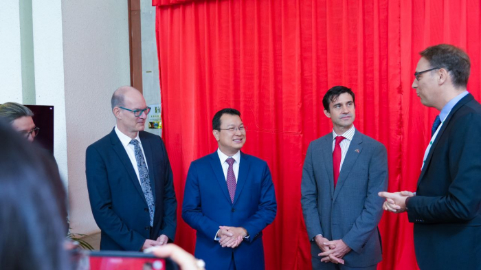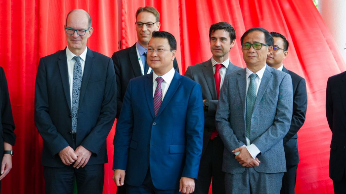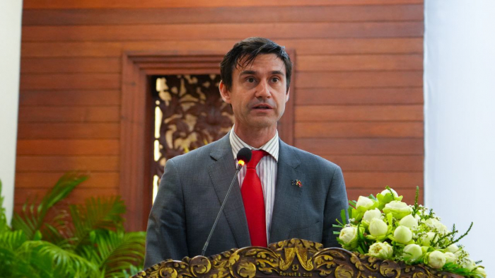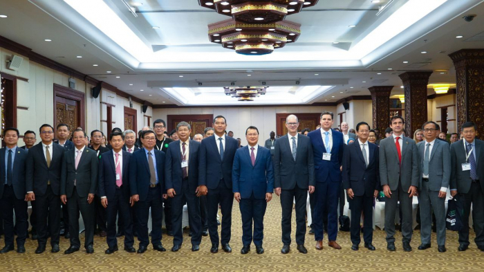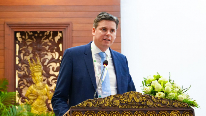 ជាកិច្ចចាប់ផ្តេីម ឯកឧត្តមរដ្ឋមន្ត្រី បានសម្តែងនូវការស្វាគមន៍ និងក្តីសោមនស្សរីករាយចំពោះ លោក Jost KADEL អនុប្រធានបេសកកម្ម ប្រធានកិច្ចសហប្រតិបត្តិការអភិវឌ្ឍន៍ ស្ថានទូតនៃសាធារណរដ្ឋសហព័ន្ធអាល្លឺម៉ង់ ប្រចាំព្រះរាជាណាចក្រកម្ពុជា លោក Max Bauman ទីប្រឹក្សាជាន់ខ្ពស់នៃក្រសួងសហប្រតិបត្តិការសេដ្ឋកិច្ច និងអភិវឌ្ឍន៍នៃសាធារណរដ្ឋសហព័ន្ធអាល្លឺម៉ង់ លោក Bryan Formari ប្រធានកិច្ចសហប្រតិបត្តិការ គណៈប្រតិភូសហភាពអឺរ៉ុបប្រចាំព្រះរាជាណាចក្រកម្ពុជា និងភាគីពាក់ព័ន្ធផ្សេងៗទៀត ទាំងភ្ញៀវជាតិ និងអន្តរជាតិ ដែលបានអញ្ជើញចូលរួមក្នុងពិធីដ៏មានសារៈសំខាន់នេះ។