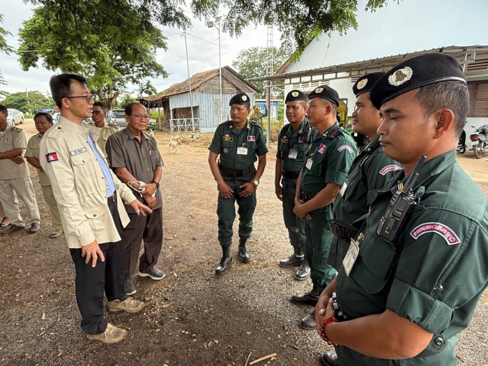 នៅរសៀលថ្ងៃទី១៤ ខែមិថុនា ឆ្នាំ២០២៥ ឯកឧត្តម អុឹម ស៊ីថុល រដ្ឋលេខាធិការប្រចាំការក្រសួងកសិកម្ម រុក្ខាប្រមាញ់ និងនេសាទ និងជាប្រធានក្រុមការងាររាជរដ្ឋាភិបាលចុះមូលដ្ឋានស្រុកស្វាយចេក បានអញ្ជេីញចុះជួបសំណេះសំណាលជាមួយកម្លាំងប្រជាការពារភូមិជាប់ព្រំដែនទាំង៥ នៃឃុំស្លក្រាម និងឃុំស្វាយចេក ស្រុកស្វាយចេក ខេត្តបន្ទាយមានជ័យ។
