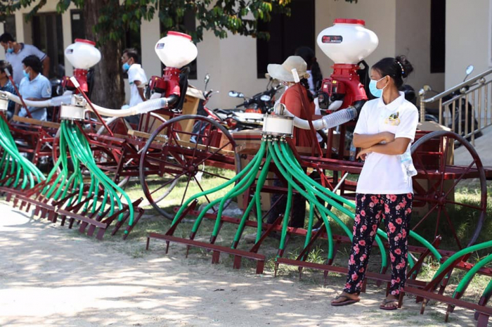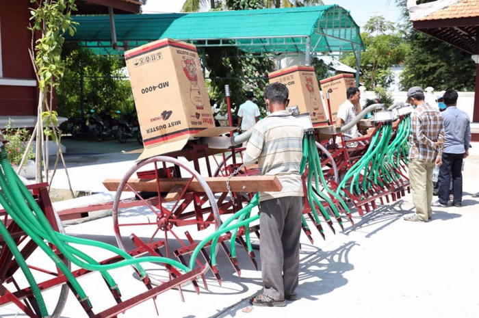 មានមតិណែនាំបន្ថែម ឯកឧត្តមរដ្ឋមន្ត្រីបានណែនាំឲ្យអ្នកទទួលជំនួយទាំង ១៣០នាក់ថា បើយកទៅប្រើប្រាស់ឲ្យបានសមស្រប ហើយត្រូវចាត់ទុកថានេះជាកម្មសិទ្ធិរបស់កសិករម្នាក់ៗ ហើយត្រូវចូលរួមថែរក្សាឲ្យបានគង់វង្សល្អ។ ទន្ទឹមនឹងកសិករដែលទទួលបានឧបករណ៍ដាំស្រូវនាថ្ងៃនេះ ប្រសិនជាមានលទ្ធភាព គួរជួយចែករំលែកឲ្យអ្នកភូមិផងរបងជាមួយប្រើប្រាស់ផងដើម្បីបង្កើតភាពសុខដុមរមនាក្នុងសង្គម និងជាពិសេសជួយជំរុញល្បឿនបង្កបង្កើនផលព្រមគ្នា។ ចំពោះក្រុមហ៊ុន កសិកម្មឈ្លាសវៃ (Agri-Smart) ដែលបានចុះកុងត្រាការផលិតឧបករណ៍នេះ ឯកឧត្តមរដ្ឋមន្ត្រីបានណែនាំឲ្យក្រុមហ៊ុនត្រូវធ្វើការសិក្សាស្រាវជ្រាវបន្ថែមទៅលើគុណភាព ប្រសិទ្ធភាព និងសុវត្ថិភាពក្នុងពេលប្រើប្រាស់ និយាយរួមគឺត្រូវធ្វើទំនើបកម្មឧបករណ៍នេះជាជំហានៗឲ្យបានសមស្របតាមការវិវឌ្ឍន៍រីកចម្រើននៃវិស័យគ្រឿងយន្តកសិកម្ម ប្រកបដោយការប្រកួតប្រជែង បរិយាប័ន្ន ធន់និងការប្រែប្រួលអាកាសធាតុ និងនវានុវត្តន៍។ គួរបង្កើតក្រុមជំនាញបច្ចេកទេសចុះតាមដាន និងទទួលយកនូវ រាល់បញ្ហារបស់កសិករដែលប្រើឧបករណ៍ រួចយកមកដោះស្រាយជូនពួកគាត់ឲ្យបានទាន់ពេលវេលា។ ជាថ្មីម្តងទៀត ឯកឧត្តមរដ្ឋមន្ត្រីបានថ្លែងអំណរគុណយ៉ាងជ្រាលជ្រៅបំផុតចំពោះសម្តេចតេជោ ដែលតែងតែយកចិត្តទុកដាក់ខ្ពស់ដល់វិស័យកសិកម្ម ជាពិសេស លោកតែងតែបានជួយដោះស្រាយជូនរបស់ប្រជាជនជនទាន់ពេលវេលា និងគ្រប់កាលទេសៈ ហើយក្នុងឱកាសដ៏វិសេសវិសាលនេះ ឯកឧត្តមបានបួងសួងដ៏គុណបុណ្យព្រះបារមីថែរក្សាព្រះរាជាណាចក្រកម្ពុជា សូមតាមជួយជ្រោមជ្រែងសម្តេចឲ្យទទួលបានសុខភាពបរិបូណ៍ ឈ្នះមាសត្រូវគ្រប់ទិសទី និងបន្តដឹកនាំប្រទេសទទួលជោគជ័យថ្មីៗថែមទៀត។