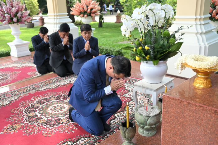 ក្នុងឱកាសចូលគាល់ សម្តេចព្រះមហាក្សត្រី នរោត្តម មុនិនាថ សីហនុ ព្រះវររាជមាតាជាតិខ្មែរ ឯកឧត្តមរដ្ឋមន្រ្តី បានដឹកនាំប្រតិភូ គោរពព្រះវិញ្ញាណក្ខន្ធ ព្រះករុណាព្រះបាទសម្តេចព្រះ នរោត្តម សីហនុ ព្រះមហាវីរក្សត្រ ព្រះវររាជបិតា ឯករាជ្យ បូរណភាពទឹកដី និងឯកភាពជាតិខ្មែរ “ព្រះបរមរតនកោដ្ឋ”៕