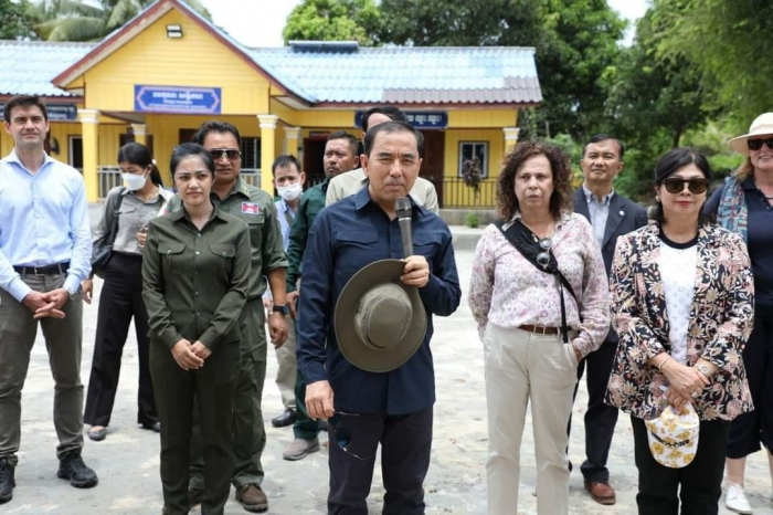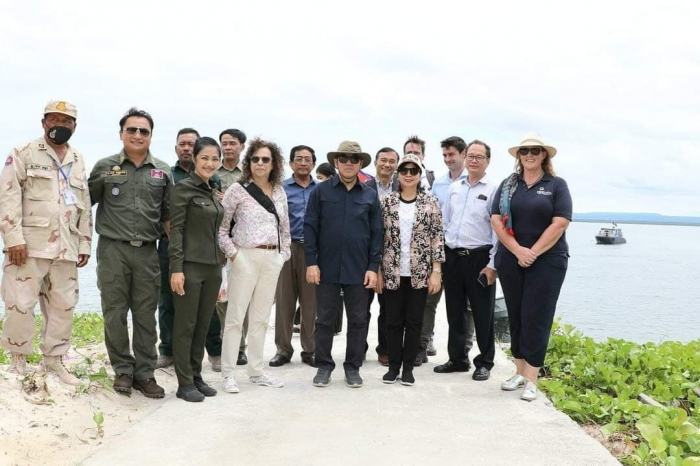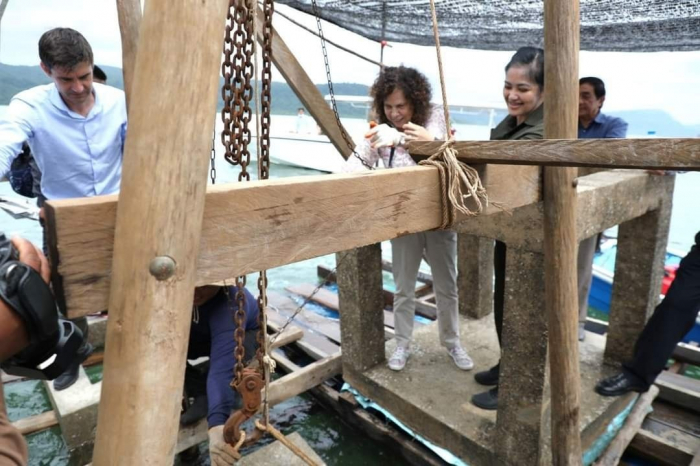 ឯកឧត្តមរដ្ឋមន្រ្តី វេង សាខុន រួមជាមួយ លោកជំទាវ Carmen Moreno បានចូលរួមទម្លាក់ប្រអប់បេតុងសម្រាប់ជាជម្រកសិប្បនិម្មិត និងទប់ស្កាត់បទល្មើសនេសាទ