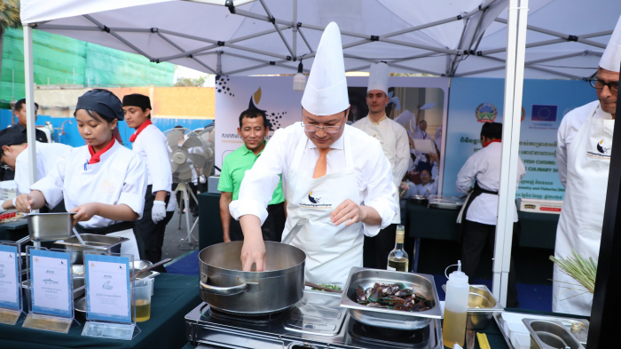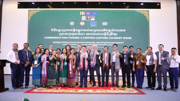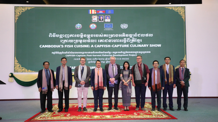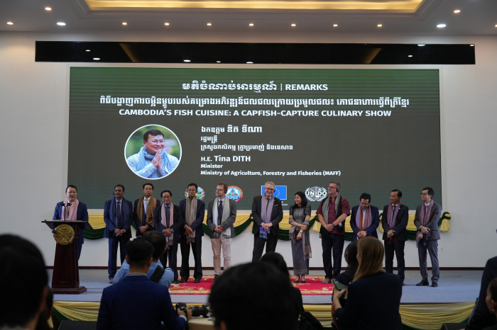 នារសៀលថ្ងៃទី០៥ ខែកុម្ភៈ ឆ្នាំ២០២៥ ឯកឧត្តម ឌិត ទីណា រដ្ឋមន្ត្រីក្រសួងកសិកម្ម រុក្ខាប្រមាញ់ និងនេសាទ បានអញ្ជេីញជាអធិបតីក្នុងពិធីបង្ហាញការចម្អិនម្ហូបរបស់គម្រោងអភិវឌ្ឍន៍ជលផលក្រោមប្រមូលផល (CAPFISH-CAPTURE) នៅទីស្តីការក្រសួងកសិកម្ម រុក្ខាប្រមាញ់ និងនេសាទ។