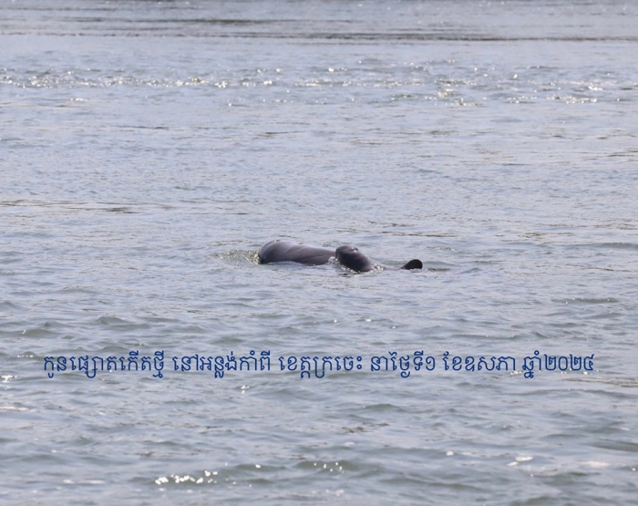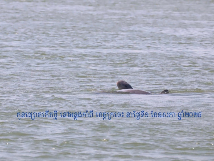 កូនផ្សោតទើបកើតថ្មីមួយក្បាល ត្រូវបានប្រទះឃើញដោយក្រុមការងារស្រាវជ្រាវនៃរដ្ឋបាលជលផលនិងអង្គការ WWF វេលាម៉ោង៩:១០នាទីព្រឹក នាថ្ងៃទី១ ខែឧសភា ឆ្នាំ២០២៤ នៅអន្លង់កាំពី ភូមិកាំពី ឃុំសំបុក ស្រុកចិត្របុរី ខេត្តក្រចេះ។ កូនផ្សោតនេះស្ថិតនៅក្នុងក្រុមសត្វផ្សោតធំៗចំនួន២ក្បាលផ្សេងទៀត។