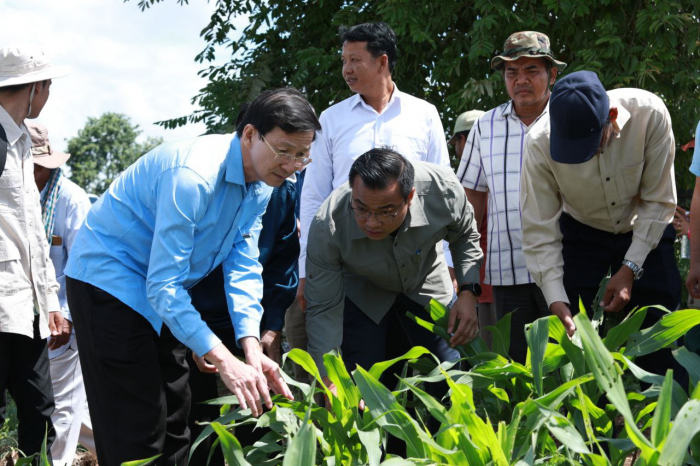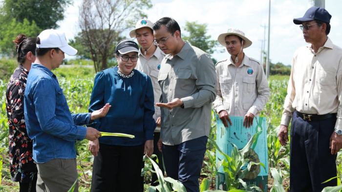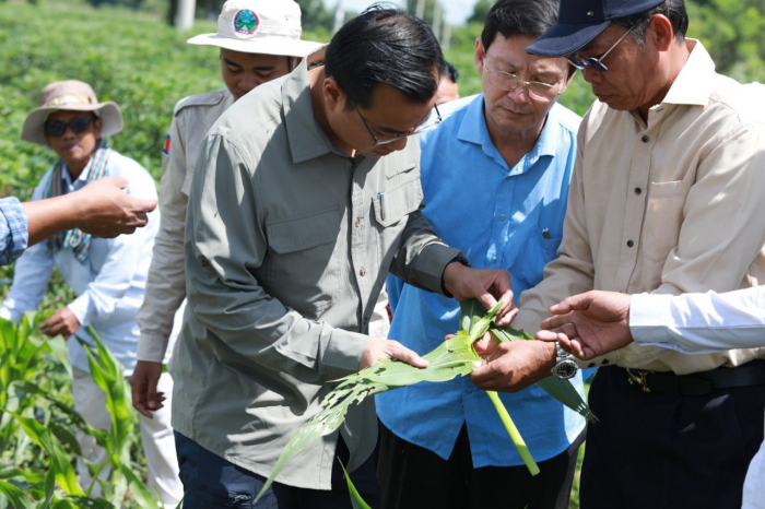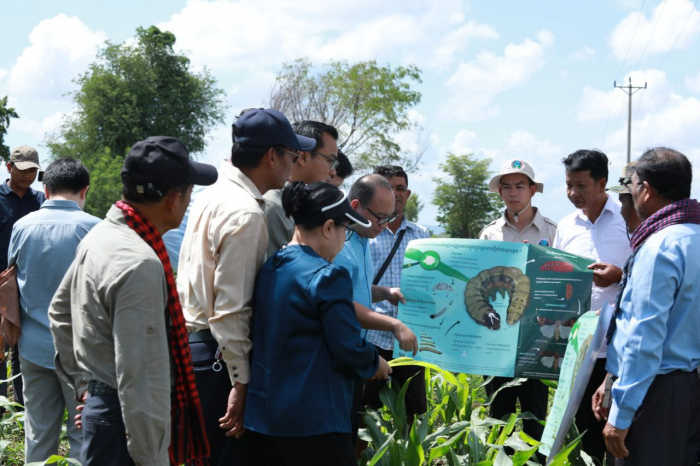 នៅថ្ងៃទី២៩ ខែមិថុនា ឆ្នាំ២០២៤ ឯកឧត្តម ប្រាក់ ដាវីដ រដ្ឋលេខាធិការក្រសួងកសិកម្ម រុក្ខាប្រមាញ់ និងនេសាទ បានដឹកនាំមន្ត្រីជំនាញចុះពិនិត្យ និងវាយតម្លៃលទ្ធផលនៃការអន្តរាគមន៍ លើការបាញ់ថ្នាំកសិកម្មកម្ចាត់ដង្កូវហ្វូងជូនប្រជាកសិករ នៅភូមិបន្ទាយឆ្មារជើង ឃុំបន្ទាយឆ្មារ ស្រុកថ្មពួក ខេត្តបន្ទាយមានជ័យ ដោយមានការអញ្ជើញចូលរួមពីសំណាក់ឯកឧត្តម ឃ្លោក នួយ អភិបាលរងខេត្តបន្ទាយមានជ័យ ឯកឧត្តម ហុង ណារិត លោកជំទាវ លី សាគីណា ឯកឧត្តម ប៉ុល សុផា ឯកឧត្តម ស្រី សុទ្ធា ប្រធានមន្ទីរកសិកម្ម មន្ត្រីកសិកម្មឃុំ និងអាជ្ញាធរមូលដ្ឋាន។