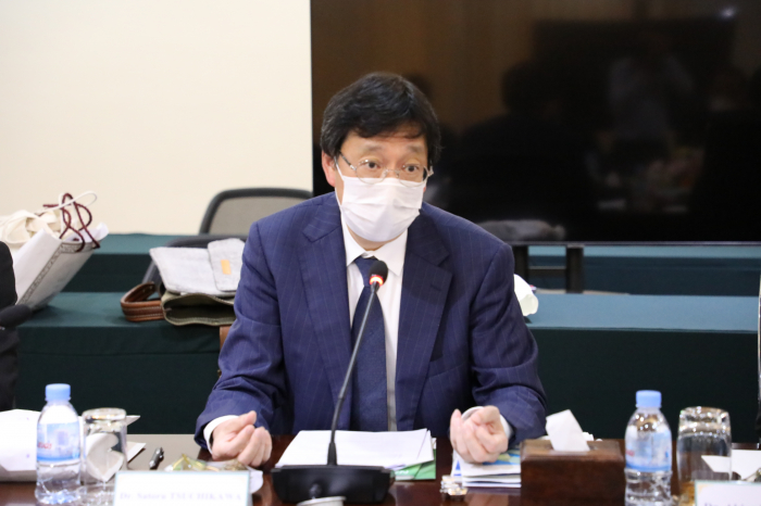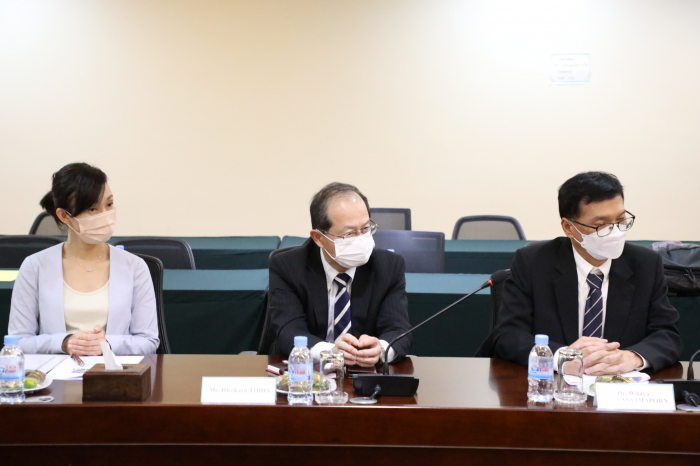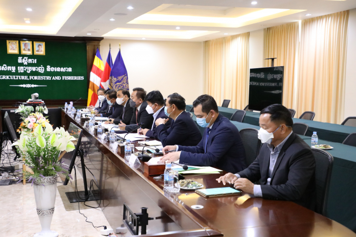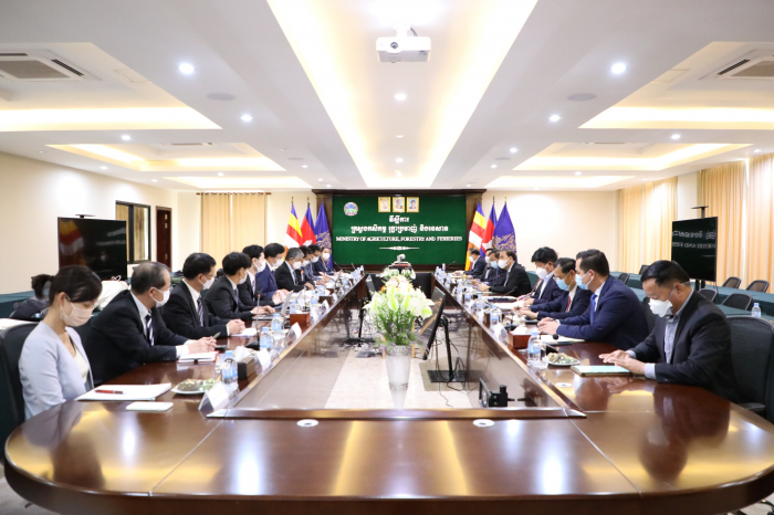 នៅទីស្តីការក្រសួងកសិកម្ម រុក្ខាប្រមាញ់ និងនេសាទ នៅវេលាម៉ោង ១៤:០០ ថ្ងៃសុក្រ ២រោច ខែអាសាឍ ឆ្នាំខាល ចត្វាស័ក ព.ស. ២៥៦៦ ត្រូវនឹងថ្ងៃទទី១៥ ខែកក្កដា ឆ្នាំ២០២២ ឯកឧត្តមរដ្ឋមន្រ្តី វេង សាខុន បានទទួលជួបពិភាក្សាការងារជាមួយគណ:ប្រតិភូដែលអញ្ជើញមកពីសាកលវិទ្យាល័យណាហ្គោយ៉ា (ជប៉ុន) ដឹកនាំដោយ Dr. Satoru TSUCHIKAWA (ព្រឹទ្ធបុរស)។ ភាគីទាំងពីរបានពិភាក្សាគ្នាអំពីការពង្រឹង និងពង្រីកកិច្ចសហប្រតិបត្តិការនៃការបណ្តុះបណ្តលធនធានមនុស្សដែលជាមន្រ្តីជំនាញក្រោមឱវាទក្រសួងកសិកម្ម រុក្ខាប្រមាញ់ និងនេសាទនាពេលអនាគតទាំងបរិមាណ និងគុណភាព ឆ្លើយតបតាមសេចក្តីត្រូវការរបស់ប្រទេសជាតិក្នុងការកសាង និងអភិវឌ្ឍសង្គម និងសេដ្ឋកិច្ច ជាពិសេសវិស័យកសិកម្ម។ នាឱកាសនេះ Dr. Satoru TSUCHIKAWA បានជម្រាបជូនឯកឧត្តមរដ្ឋមន្រ្តីដោយសង្ខេបផងដែរអំពីរចនាសម្ព័ន្ធការអប់រំរបស់សាកលវិទ្យាល័យណាហ្គោយ៉ា កម្មវិធិសិក្សាថ្នាក់បណ្ឌិតដែលកំពុងដំណើរការ លក្ខខណ្ឌ នៃការជ្រើសរើសនិស្សិតដើម្បីផ្តល់អាហារូបករណ៍។ល។ នាឱកាសនេះ ឯកឧត្តមរដ្ឋមន្ត្រីបានថ្លែង អំណរគុណជូនចំពោះសាកលវិទ្យាល័យណាហ្គោយ៉ា ដែលបានគិតគូ យកចិត្តទុកដាក់ និងបន្តពង្រឹងកិច្ចសហការយ៉ាងល្អប្រសើរក្នុងការផ្តល់អាហារូបករណ៍ជូនដល់មន្រ្តីដើម្បីបន្តការសិក្សាទៅតាមជំនាញនីមួយៗ និងឆក់យកឱកាសបង្កើនចំណេះដឹង និងបទពិសោធន៍ល្អៗបន្ថែមទៀតទាក់ទងវិស័យកសិកម្ម ឲ្យស្របទៅតាមនិន្នាការកើនឡើងនៃសេចក្តីត្រូវការធនធានមនុស្ស ការប្រកួតប្រជែងទីផ្សារនាំចេញ ការប្រើប្រាស់បច្ចេកវិទ្យាសមស្រប ការកែច្នៃកសិផលដើម្បីបង្កើនតម្លៃបន្ថែម និងការកសាងហេដ្ឋារចនាសម្ព័ន្ធគាំទ្រលើខ្សែច្រវាក់ផលិតកម្ម។ មិនតែប៉ុណ្ណោះ ឯកឧត្តមរដ្ឋមន្ត្រីក៏បានស្នើឲ្យភាគីជប៉ុនពិចារណាលើប្រធានបទសំខាន់ៗសម្រាប់និស្សិតធ្វើការសិក្សាស្រាវជ្រាវឲ្យកាន់តែស៊ីជម្រៅ ដើម្បីឈានទៅធ្វើការដោះស្រាយបញ្ហាឲ្យកាន់តែមាន ប្រសិទ្ធភាព ដែលកម្ពុជាកំពុងប្រឈមមានដូចជា៖ ការការពារនូវការបាត់បង់គុណភាពដីផ្នែកស្រទាប់លើ ផលប៉ះពាល់បណ្តាលមកពីការប្រែប្រួលអាកាសធាតុលើផលិតកម្មដំណាំ និងសត្វ ផលប៉ះពាល់លើធនធានធម្មជាតិក្នុងបឹងទន្លេសាបបណ្តាលមកពីកម្ពស់ទឹកទន្លេមេគង្គមិនទៀងទាត់ ផលិតភាពផលិតកម្មដំណាំនៅតំបន់ខ្ពង់រាប ពិសេសខេត្តមណ្ឌលគីរី (ដំឡូងជ្វាផ្អែមជប៉ុន)។ល។ ភាគីជប៉ុន បានទទួលយកសំណើនេះទៅពិចារណាដើម្បីធ្វើការសិក្សាស្រាវជ្រាវរួមគ្នា នាពេលអនាគត។ សរុបសេចក្តីមក ជំនួបពិភាក្សាបានឯកភាពរួមគ្នាមួយគឺបន្តពង្រឹក និងពង្រីកកិច្ចសហប្រតិបត្តិរវាងសាកលវិទ្យាល័យទាំងពីរក្នុងការបណ្តុះបណ្តាលធនធានមនុស្សសម្រាប់វិស័យកសិកម្មឲ្យកាន់តែទូលំទូលា និងស៊ីជម