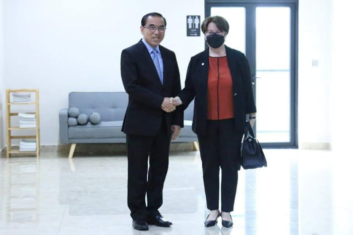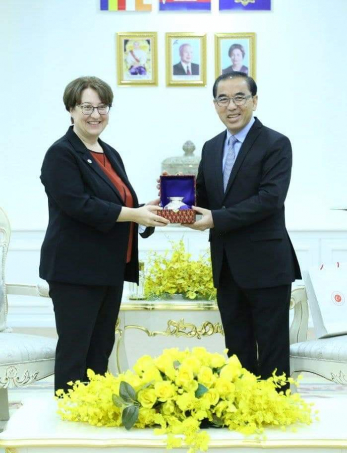 នៅស្តីការក្រសួងកសិកម្ម រុក្ខាប្រមាញ់ និងនេសាទ នាវេលាម៉ោង ១៥:០០ ថ្ងៃពុធ ១២កើត ខែភទ្របទ ឆ្នាំខាល ចត្វាស័ក ព.ស ២៥៦៦ ត្រូវនឹងថ្ងៃទី០៧ ខែកញ្ញា ឆ្នាំ២០២២ ឯកឧត្តមរដ្ឋមន្ត្រី វេង សាខុន បានទទួលជួបលោកជំទាវ Ulku Kocaefe ឯកអគ្គរដ្ឋទូតថ្មីនៃសាធារណរដ្ឋតួកគីប្រចាំព្រះរាជាណាចក្រកម្ពុជា ដើម្បីសម្ដែងការគួរសម និងពិភាក្សាការងារ។ មានមតិស្វាគមន៍ ឯកឧត្តមរដ្ឋមន្ត្រីបានធ្វើការអបអរសាទរចំពោះលោកជំទាវ ដែលត្រូវបានរដ្ឋាភិបាលនៃសាធារណរដ្ឋតួកគីផ្តល់សេចក្តីទុកចិត្តតែងតាំងជាឯកអគ្គរដ្ឋទូតវិសាមញ្ញ និងពេញសមត្ថភាពថ្មីប្រចាំព្រះរាជាណាចក្រកម្ពុជាសម្រាប់អាណត្តិ ៤ឆ្នាំ។ ឆ្លៀតយកឱកាសនេះ ឯកឧត្តមបានជម្រាបលោកជំទាវដោយសង្ខេបអំពីសក្តានុពលកសិកម្មកម្ពុជា ដែលមិនគ្រាន់តែផលិតបានគ្រប់គ្រាន់ និងលើសពីតម្រូវការក្នុងស្រុកប៉ុណ្ណោះទេ ប៉ុន្តែថែមទាំងអាចធ្វើការនាំចេញទៅកាន់ទីផ្សារក្នុងតំបន់ និងពិភពលោក។ ទោះជាយ៉ាងណា សក្តានុពលនៃផលិតកម្មកែច្នៃ និងហេដ្ឋារចនាសម្ព័ន្ធគាំទ្រនៅមានកម្រិត ដែលទាមទារឲ្យមានការចូលរួម និងគាំទ្រពីដៃគូអភិវឌ្ឍន៍ ពិសេសវិស័យឯកជនទាំងក្នុង និងក្រៅប្រទេស។ ករណីនេះ នៅចំពោះមុខលោក ជំទាវ ឯកឧត្តមរដ្ឋមន្ដ្រីបានអំពាវនាវ និងស្វាគមន៍វិនិយោគិនតួកគីដើម្បីពិនិត្យលទ្ធភាពវិនិយោគលើវិស័យកសិកម្មកម្ពុជានាពេលអនាគត់។ ពាក់ព័ន្ធនឹងកិច្ចសហប្រតិបត្តិការរវាងប្រទេសទាំងពីរលើវិស័យកសិកម្ម ឯកឧត្តមរដ្ឋមន្ត្រីបានស្នើលោកជំទាវជួយពិនិត្យ ពិចារណា ធ្វើការជំរុញការអនុវត្តការងារដែលបានចែងនៅក្នុងឯកសារអនុស្សារណៈនៃការយោគយល់គ្នាដែលបានចុះហត្ថលេខាតាំងពីឆ្នាំ២០១៨ ដើម្បីចាប់ផ្តើមអនុវត្ត ក្នុងគោលបំណងធ្វើការផ្លាស់ប្តូរ ចែករំលែកបទពិសោធន៍ចំណេះដឹង ជាពិសេសលើការធ្វើទំនើបកម្មកសិកម្ម អភិវឌ្ឍន៍ធនធានមនុស្សកម្ពុជា។ លោកជំទាវ Ulku Kocaefe បានថ្លែងអំណរគុណជូនចំពោះឯកឧត្តមរដ្ឋមន្រ្តីសម្រាប់ជំនួប នាពេលនេះ និងបានផ្តល់ព័ត៌មានសំខាន់ៗទាក់ទងនឹងសក្តានុពលនៃវិស័យកសិកម្មកម្ពុជា។ លោកជំទាវបានលើកឡើងថា វិស័យកសិកម្មគឺជាឆ្អឹងខ្នងសេដ្ឋកិច្ចសម្រាប់ប្រទេសទាំងពីរ ការអភិវឌ្ឍវិស័យកសិកម្មគឺជាគោលការណ៍គ្រឹះនៃការអភិវឌ្ឍប្រទេសជាតិ។ ដូច្នេះ ការពង្រឹង និងពង្រីកកិច្ចសហប្រតិបត្តិការលើវិស័យកសិកម្មរវាងប្រទេសទាំងពីរគឺជាអាទិភាពឈានមុខគេ ដោយសារវិស័យកសិកម្មកម្ពុជាមានសក្តានុពល មានទឹកគ្រប់គ្រាន់ និងផលិតផលមួយចំនួន ផលិតលើសពីតម្រូវការក្នុងស្រុក និងត្រូវការបច្ចេកវិទ្យាកែច្នៃវត្ថុធាតុដើមសំខាន់ៗដើម្បីធ្វើការនាំចេញ។ ដូច្នេះ សម្រាប់អាណត្តិ ៤ឆ្នាំ នៃបេសកកម្មការទូតរបស់លោកជំទាវនៅកម្ពុជា លោក ជំទាវថានឹងជំរុញ