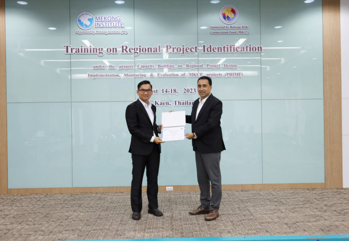 ខេត្តកនកេន៖ ដោយទទួលបានការអញ្ជើញពីវិទ្យាស្ថានមេគង្គ នៃព្រះរាជាណាចក្រថៃឡង់ដ៍ លោក ផុន រិណុ ប្រធានការិយាល័យគ្រប់គ្រងការកែច្នៃ នៃនាយកដ្ឋានកសិ-ឧស្សាហកម្ម ក្រសួងកសិកម្ម រុក្ខាប្រមាញ់ និងនេសាទ បានអញ្ជើញចូលរួមវគ្គបណ្ដុះបណ្ដាលស្ដីពីការកំណត់អត្តសញ្ញាណគម្រោងក្នុងតំបន់ (Training on Regional Project Identification) រយៈពេល ០៥ថ្ងៃ គឺចាប់ពីថ្ងៃចន្ទ ១៣រោច ខែទុតិយាសាឍ ឆ្នាំថោះ បញ្ចស័ក ព.ស.២៥៦៧ ត្រូវនឹងថ្ងៃទី១៤ ខែសីហា ឆ្នាំ២០២៣ រហូតដល់ថ្ងៃសុក្រ ២កើត ខែស្រាពណ៍ ឆ្នាំថោះ បញ្ចស័ក ព.ស.២៥៦៧ ត្រូវនឹងថ្ងៃទី១៨ ខែសីហា ឆ្នាំ២០២៣ វគ្គបណ្ដុះបណ្ដាលនេះ ប្រព្រឹត្តទៅនៅវិទ្យាស្ថានមេគង្គ ខេត្តកនកេន ព្រះរាជាណាចក្រថៃឡង់ដ៍ និងដោយមានការអញ្ជើញចូលរួមពីមន្ដ្រីជំនាញតំណាងក្រសួង-ស្ថាប័នពាក់ព័ន្ធដូចជា ក្រសួងការងារ និងបណ្ដុះបណ្ដាលវិជ្ជាជីវៈ ក្រសួងអប់រំ យុវជន និងកីឡា ក្រសួងវប្បធម៌ និងវិចិត្រសិល្បៈ ក្រសួងសាធារណការ និងដឹកជញ្ជូន ក្រសួងប្រៃសណីយ៍និងទូរគមនាគមន៍ និងក្រសួងបរិស្ថាន សរុបចំនួន ០៨រូប ពីប្រទេសកម្ពុជា ។ គោលបំណងសំខាន់នៃវគ្គបណ្ដុះបណ្ដាលនេះ គឺធ្វើយ៉ាងណាជំរុញឱ្យបណ្ដាប្រទេសក្នុងតំបន់មេគង្គ-កូរ៉េ រួមគ្នាដោះស្រាយបញ្ហាក្នុងតំបន់តាមរយៈកិច្ចសហការគ្នារវាងស្ថាប័នជំនាញដើម្បីរៀបចំការបង្ហាញចំណាប់អារម្មណ៍ (EOI) លើអាទិភាពលើវិស័យចំនួន០៧ រូមមាន៖ វប្បធម៌ និងទេសចរណ៍(Culture and Tourism), ការអភិវឌ្ឍធនធានមនុស្ស (Human Resources Development), កសិកម្មនិងការអភិវឌ្ឍជនបទ (Agriculture and Rural Development), ហេដ្ឋារចនាសម្ព័ន្ធ (Infrastructure),