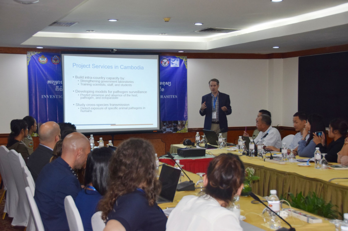 កិច្ចប្រជុំប្រចាំឆ្នាំគម្រោង "សិក្សាស្រាវជ្រាវអំពីហានិភ័យនៃការចម្លងជំងឺមកមនុស្សពីប៉ារ៉ាស៊ីតរបស់ពពួកថនិកសត្វខ្លួនតូចៗ ប្រចៀវ និងជ្រឹង" នៅសណ្ឋាគារភ្នំពេញ