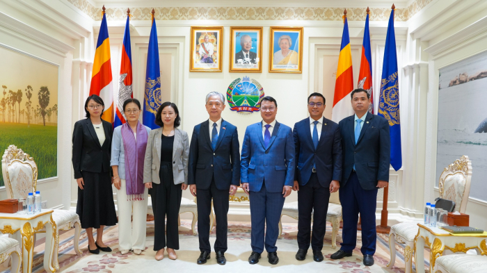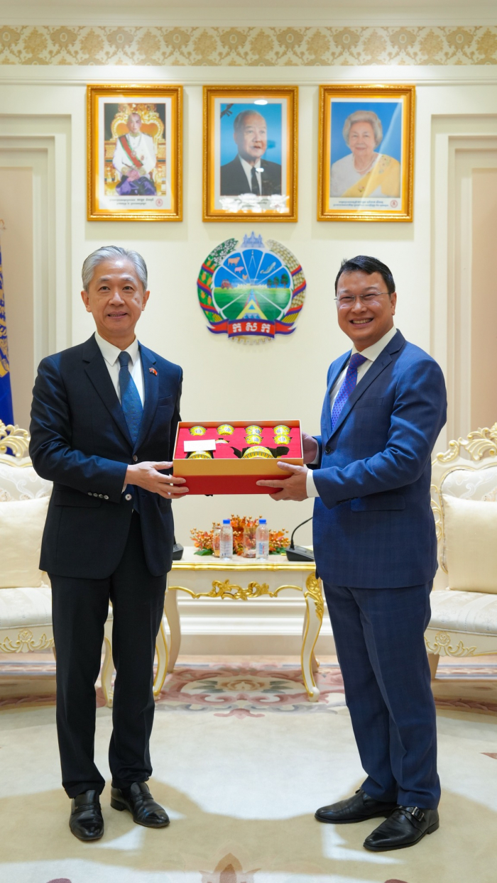 នៅព្រឹកថ្ងៃទី០៤​ ខែកញ្ញា ឆ្នាំ២០២៤ ឯកឧត្តម ឌិត ទីណា រដ្ឋមន្ត្រីក្រសួងកសិកម្ម រុក្ខាប្រមាញ់ និងនេសាទ និងថ្នាក់ដឹកនាំ បានទទួលជួបសម្តែងការគួរសមជាមួយឯកឧត្តម វ៉ាង ​វិនប៊ិន ​(Wang Wenbin)​ ឯកអគ្គរដ្ឋទូតវិសាមញ្ញ និងពេញសមត្ថភាពនៃសាធារណរដ្ឋប្រជាមានិតចិនប្រចាំព្រះរាជាណាចក្រកម្ពុជា នៅទីស្តីការក្រសួងកសិកម្ម រុក្ខាប្រមាញ់ និងនេសាទ។ ក្នុងជំនួបនេះ ឯកឧត្តមរដ្ឋមន្ត្រី បានសម្តែងនូវការស្វាគមន៍ និងសេចក្តីសោមនស្សរីករាយចំពោះវត្តមានរបស់ឯកឧត្តមឯកអគ្គរដ្ឋទូតក្នុងការមកបន្តពង្រឹងកិច្ចសហប្រតិបត្តិការរវាងប្រទេសទាំងពីរ និងជំរុញកិច្ចសហប្រតិបត្តិការ «ត្បូងពេជ្រ» ដោយផ្តោតសំខាន់លើវិស័យចំនួន៦ ក្នុងនោះក៏មានវិស័យកសិកម្មតាមរយៈច្រកមច្ឆានិងអង្ករ (Rice and Fish Corridor) សម្រាប់ការអភិវឌ្ឍកសិកម្មរវាងប្រទេសទាំងពីរឱ្យទទួលបាននូវប្រសិទ្ធភាព និងមានលទ្ធផលផ្លែផ្កា។ បើតាម ឯកឧត្តមរដ្ឋមន្ត្រី កម្ពុជាបើកចំហរ និងស្វាគមន៍អ្នកវិនិយោគមកលើការកែច្នៃកសិផលកម្ពុជាដូចជា ស្រូវអង្ករ ស្វាយ ស្វាយចន្ទី សំបុកត្រចៀកកាំ ដែលមានគុណភាពល្អប្រណិត មានរសជាតិឆ្ងាញ់ ដែលអ្នកវិនិយោគចិនអាចពិចារណាវិនិយោគនៅកម្ពុជា។ តាមរយៈការវិនិយោគនៅកម្ពុជាដោយផ្ទាល់ អ្នកវិនិយោគនឹងទទួលបានផលចំណេញទាំងនៅលើទីផ្សារចិននិងទីផ្សារអន្តរជាតិ​ និងអាចជួយលើកកម្ពស់ជីវភាពរបស់កសិករកម្ពុជាថែមទៀត។ តបតាមសំណើរបស់ឯកឧត្តមឯកអគ្គរដ្ឋទូត ឯកឧត្តមរដ្ឋមន្ត្រី បានស្វាគមន៍ចំពោះទស្សនកិច្ចរបស់អ្នកជំនាញកសិកម្មចិន មកកាន់កម្ពុជា ដើម្បីចែករំលែកបទពិសោធនិងផ្ទេរចំណេះដឹងថ្មីៗនៅក្នុងវិស័យកសិកម្ម មកដល់មន្ដ្រីជំនាញកម្ពុជា។ ឯកឧត្តមរដ្ឋមន្ដ្រីគូសបញ្ជាក់ថា ក្រសួងនឹងជួយគាំទ្រ ក៏ដូចជាសម្របសម្រួូលទាំងផ្លូវច្បាប់ និងបច្ចេកទេស ដើម្បីឱ្យការងារនេះ ដំណើរការទៅដោយរលូន និងមានប្រសិទ្ធភាពខ្ពស់។ ជាថ្មីម្តងទៀត ឯកឧត្តមរដ្ឋមន្ត្រី បានសម្ដែងសុទិដ្ឋិនិយមខ្ពស់ និងអរគុណចំពោះលោកឯកអគ្គរដ្ឋទូតចិន ដែលយកចិត្តទុកដាក់ពង្រឹងកិច្ចសហប្រតិបត្តិការកម្ពុជា-ចិនឱ្យកាន់តែរឹងមាំបន្ថែមទៀត និងជំរុញច្រកមច្ឆានិងអង្ករ (Rice and Fish Corridor) ឱ្យចេញជារូបរាងពិតប្រាកដ ឆាប់រហ័ស និងទទួលបាននូវសមិទ្ធផលជូនប្រជាជននិងប្រជាជាតិទាំងពីរ៕