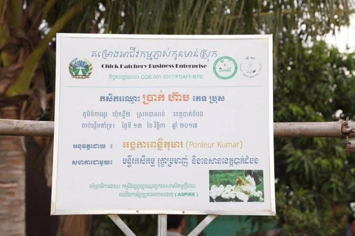កម្មវិធីចុងក្រោយ សម្រាប់បេសកកម្មថ្ងៃទី១ ឯកឧត្តមរដ្ឋមន្ត្រី និងសហការីបានបន្តដំណើរមក ពិនិត្យបណ្តុំអាជីវកម្មមាន់ (ទូភា្ញស់កូនមាន់ និងចិញ្ចឹមមាន់យកសាច់) និងការបណ្តុះកូនស្វាយលក់ ស្ថិតនៅក្នុងភូមិចំការអូរ ឃុំកន្ទឺ២ ស្រុកបាណន់ ដែលទទួលបានការគាំទ្រដោយគម្រោងកម្មវិធីស្តីពី "ការផ្សព្វផ្សាយបច្ចេកទេសកសិកម្មថ្មី ដែលធន់ទៅនឹងការប្រែប្រួលអាកាសធាតុ ហៅកាត់ថា ASPIRE" លោក ប្រាក់ ហ៊ាប ម្ចាស់ផ្ទះ បានជម្រាបជូនឯកឧត្តមរដ្ឋមន្រ្តីថា លោកពូបានចាប់យករបរនេះជាអាជីពស្នូលតាំងពីឆ្នាំ២០១៧ រហូតមកទល់បច្ចុប្បន្ន ដោយទទួលបានការគាំទ្រពីកម្មវិធី ASPIRE ចាប់ផ្តើមពីមេ-បា ៣០ក្បាល ទូរភ្ញាស់ និងបច្ចេកទេស។ បច្ចុប្បន្នកើនដល់ ១៦០ក្បាល (មេ-បា) អាចផ្គត់ផ្គង់កូនមាន់ជូនអតិថិជនបាន ៤៥០ក្បាល/ខែ កូនតម្លៃ ១ក្បាល/ ០០០រៀល។ ក្រៅពីលក់កូន គាត់អាចលក់មាន់សាច់បាន ៧០kg/ខែ បានតម្លៃ ៨០០០រ/kg ជាមធ្យម គាត់អាចរកប្រាក់ចំណូលពីការលក់មាន់សាច់ និងកូនមាន់បាន ៣០លានរៀល/ឆ្នាំ (កាត់ថ្លៃដើមរួច) បូកចំណូលបន្ថែមពីការលក់កូនស្វាយបាន ១០លានរៀល/ឆ្នាំ (១០ ០០០ដើម/ឆ្នាំ) បន្ថែមទៀត។