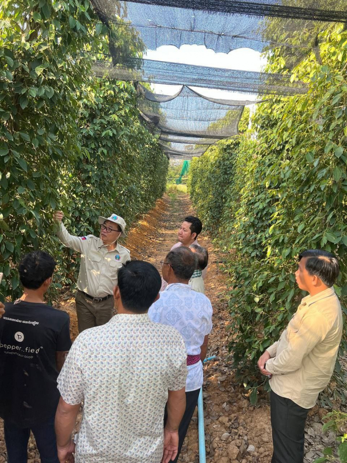 នៅថ្ងៃទី២៧ ខែកុម្ភ: ឆ្នាំ២០២៥ ឯកឧត្តម តូច ប៊ុនហួរ រដ្ឋលេខាធិការក្រសួងកសិកម្ម រុក្ខាប្រមាញ់ និងនេសាទ អមដំណើរដោយឯកឧត្តម សុខ វិសាល អនុរដ្ឋលេខាធិការក្រសួងកសិកម្ម រុក្ខាប្រមាញ់ និងនេសាទ លោក លន់ វន្នី អនុប្រធាននាយកដ្ឋានដំណាំឧស្សាហកម្មនៃអគ្គនាយកដ្ឋានកសិកម្ម លោកអភិបាលរងស្រុកកំពង់ត្រាច លោក ចាន់ រិទ្ធ ប្រធានមន្ទីរកសិកម្ម រុក្ខាប្រមាញ់ និងនេសាទខេត្តកំពត និងមន្រ្តីជំនាញ បានអញ្ជើញចុះពិនិត្យ និងវាយតម្លៃពីដំណើរការខ្សែច្រវាក់ផលិតកម្មដំណាំម្រេច តម្លៃ និងទីផ្សារ ក្នុងខេត្តកំពត។