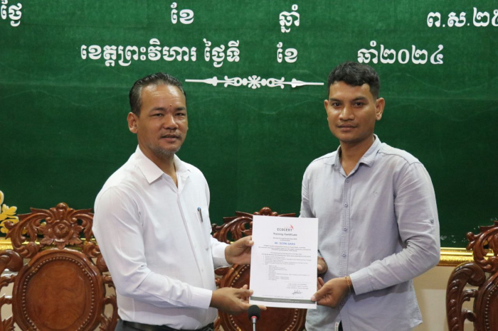 នៅថ្ងៃទី២០ ខែឧសភា ឆ្នាំ២០២៤នេះ ឯកឧត្តម ខាត់ សុធី អនុរដ្ឋលេខាធិការក្រសួងកសិកម្ម រុក្ខាប្រមាញ់ និងនេសាទ បានអញ្ជើញបិទវគ្គបណ្តុះបណ្តាលដល់មន្ត្រីកសិកម្មឃុំនៅមន្ទីរកសិកម្ម រុក្ខាប្រមាញ់ និងនេសាទខេត្តព្រះវិហារ ដោយផ្តោតលើកសិកម្មស្តង់ដារសរីរាង្គ ខ្សែច្រវាក់តម្លៃ បច្ចេកទេសផ្សព្វផ្សាយកសិកម្ម អេកូឡូស៊ី និងការសម្របសម្រួលសហគមន៍។
