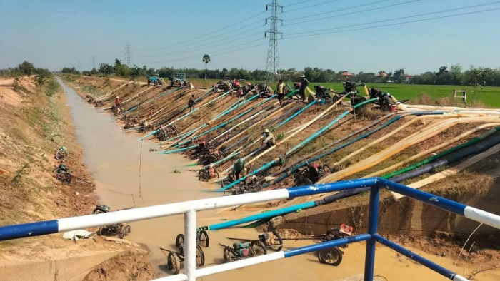 ឯកឧត្តមរដ្ឋលេខាធិការ បានគូសបញ្ជាក់ថា ក្រុមការងារបានចុះអន្តរាគមន៍ និងពិនិត្យស្ថានីយ៍បូមទឹក ស្ថិតនៅឃុំមហាលាភ ស្រុកកោះសូទិន ខេត្តកំពង់ចាម ដោយបូមចេញពីទន្លេតូចបញ្ចូលក្នុងប្រឡាយវៃគោ១ ឆ្លងកាត់ ស្រុកកោះសូទិន ខេត្តកំពង់ចាម ស្រុកអូរាំងឪ ខេត្តត្បូងឃ្មុំ បញ្ជូនឆ្ពោះមកស្រុក ស៊ីធរកណ្តាល ស្រុកកញ្ជៀច ស្រុកកំចាយមារ ស្រុកស្វាយអន្ទរ និងស្រុកមេសាង​ ខេត្តព្រៃវែង ដែលមានប្រវែងប្រមាណ៨០ គីឡូម៉ែត្រ គិតចាប់ពីចំណុចស្ថានីយ៍ដើមទី នៃការបូមមកដល់ចុងទី នៃប្រឡាយឃុំជីផុច ស្រុកមេសាង ខេត្តព្រៃវែង សរុបចំនួន​ ៨ ៧៥៣ហិកតា។