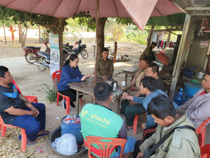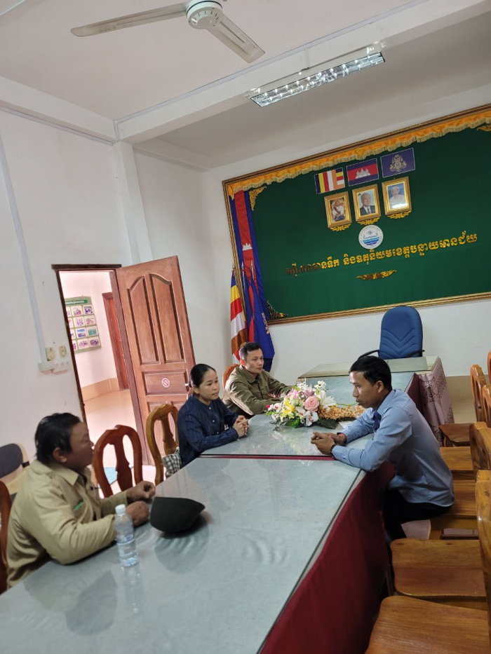 នាឱកាសនោះ លោកស្រីប្រធាននាយកដ្ឋាន និងក្រុមការងារ ក៏បានជួបសំណេះសំណាលជាមួយក្រុមប្រឹក្សាឃុំ និងមេភូមិទាំង១១ភូមិ ស្ថិតនៅសាលាឃុំបត់ត្រង់  ដោយបានពន្យល់ពីតម្លៃស្រូវ អូអឹម មិនមែនធ្លាក់ថ្លៃទេ គឺតម្លៃដែលវិលត្រឡប់ទៅស្ថានភាព២ឆ្នាំមុន  និងណែនាំឱ្យក្រុមប្រឹក្សាឃុំ មេភូមិទាំង១១ បន្តជួយផ្សព្វផ្សាយដល់ប្រជាកសិករពីបញ្ហាខ្វះទឹកបូមដាក់ស្រែប្រាំង ព្រមទាំងលើកឡើងពីសារប្រយោជន៍ នៃសហគមន៍កសិកម្មទំនើប ដែលជួយប្រជាកសិករ ក្នុងការកាត់បន្ថយថ្លៃដើមផលិត មានផែនការផលិតកម្មត្រឹមត្រូវផ្គត់ផ្គង់តាមតម្រូវការទីផ្សារ មានកិច្ចសន្យាផលិតកម្មច្បាស់លាស់ ទទួលបានកម្ចីការប្រាក់ទាប និងមានទីផ្សារពិតប្រាកដ៕