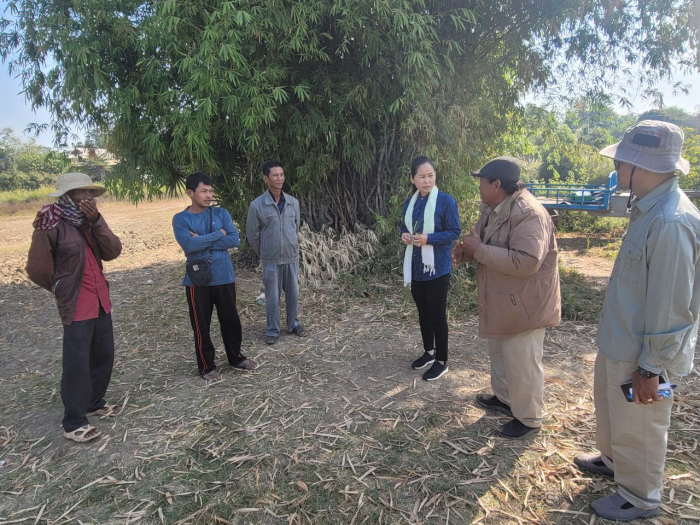 លោកស្រី អន ស៊ីថា ប្រធាននាយកដ្ឋានសវនកម្មផ្ទៃក្នុង នៃក្រសួងកសិកម្ម ដឹកនាំក្រុមការងារចុះពិនិត្យស្ថានភាពស្រូវប្រាំងប្រជាពលរដ្ឋនៅឃុំបត់ត្រង់ ខេត្តបន្ទាយមានជ័យ