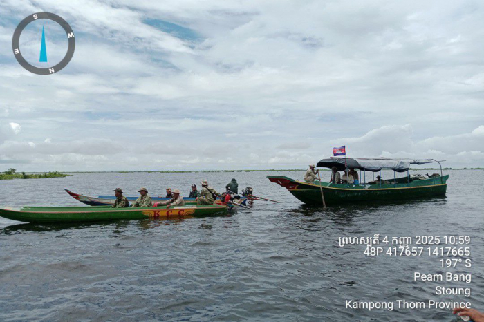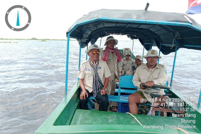 នៅថ្ងៃទី៤ ខែកញ្ញា ឆ្នាំ២០២៥ ឯកឧត្តម ប៉ែន ផល្លីកា អនុរដ្ឋលេខាធិការ ក្រសួងកសិកម្ម រុក្ខាប្រមាញ់ និងនេសាទតំណាងដ៏ខ្ពង់ខ្ពស់ឯកឧត្តមរដ្ឋមន្ត្រី ឌិត ទីណា បានដឹកនាំក្រុមការងារជំនាញ រួមមានលោក ប៉ី វិចិត្រ នាយរង​អធិការ​ដ្ឋានរដ្ឋបាលជលផលខាងជើងបឹងទន្លេសាប លោក ជិន ស៊ីថា នាយ​ខណ្ឌរដ្ឋបាលជលផលកំពង់ធំ និងសហការី តំបន់ប្រតិបត្តិការសឹករងកំពង់ធំ (យោធភូមិភាគទី៤) និងកម្លាំងចម្រុះទីបញ្ជាការស្រាលប្រចាំការឃុំពាម​បាង ស្រុកស្ទោង បានចេញប្រតិបត្តិការត្រួតពិនិត្យ និងបង្ក្រាបបទល្មើស​នេសាទ នៅចំណុចមួយចំនួនមានដូចជា៖ វាលទុង វេហាល បែកឃ្លះ ប្រាំបីមុំ កាប់ចិន ខ្វែងតាសូ និងព្រែកចងខ្លុង ស្ថិតនៅឃុំពាមបាង ស្រុកស្ទោង ខេត្តកំពង់ធំ។