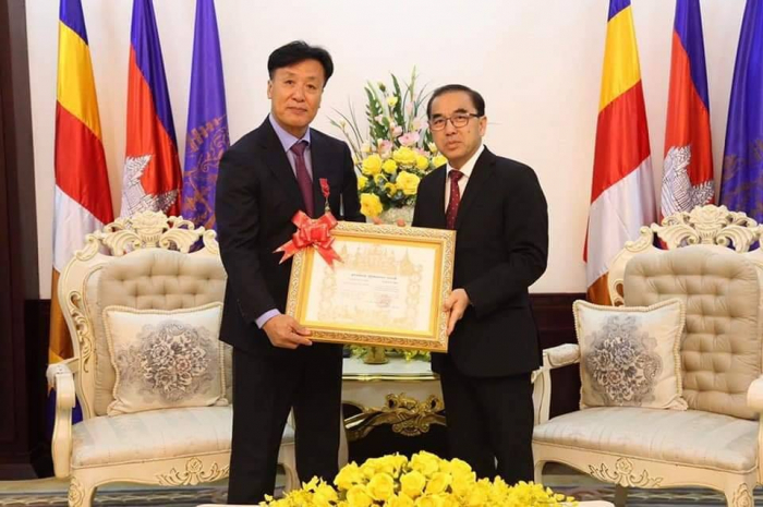 នៅទីស្តីការក្រសួងកសិកម្ម រុក្ខាប្រមាញ់ និងនេសាទ នាព្រឹកថ្ងៃសុក្រ ១២កើត ខែកត្តិក ឆ្នាំកុរ ឯកស័ក ព.ស. ២៥៦៣ ត្រូវនឹងថ្ងៃទី៨ ខែវិច្ឆិកា ឆ្នាំ២០១៩ ឯកឧត្តមរដ្ឋមន្ត្រី វេង សាខុន បាន បំពាក់គ្រឿងឥស្សរិយយស សហមេត្រីជូនសាស្រ្តាចារ្យជប៉ុនចំនួន ៣នាក់ គឺ បណ្ឌិត Takano Katsumi សាកលវិទ្យាធិការនៃសាកលវិទ្យាល័យកសិកម្មតូក្យូ សាស្រ្តាចារ្យ Yoichi Sakata និងសាស្រ្តាចារ្យ Hironobu Shiwachi រួមជាមួយជំនាញការកូរ៉េ ប្រចាំអង្គការ KOPIA កម្ពុជា ១នាក់ គឺ Mr. Song, KL DEUK ដែលមានស្នាដៃឆ្នើមក្នុងការជួយបណ្តុះបណ្តាលធនធានមនុស្សសម្រាប់វិស័យកសិកម្មនៅសាកលវទ្យាល័យភូមិន្ទកសិកម្ម។