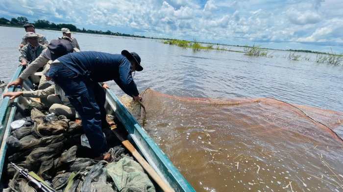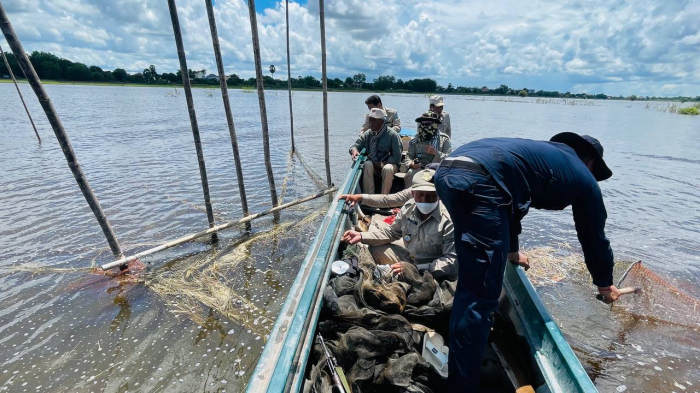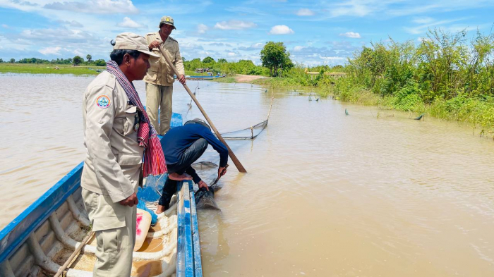នៅថ្ងៃទី២៨ ខែសីហា ឆ្នាំ២០២៤ ឯកឧត្តម ប៉ែន ផល្លីកា អនុរដ្ឋលេខាធិការក្រសួងកសិកម្ម រុក្ខាប្រមាញ់ និងនេសាទ បានដឹកក្រុមការងារចម្រុះ រួមមាន អធិការដ្ឋានរដ្ឋបាលខាងត្បូងបឹងទន្លេសាប ខណ្ឌរដ្ឋបាលជលផលកំពង់ឆ្នាំង កងរាជអាវុធហត្ថថ្នាក់ជាតិ ប៉ូលីសប៉ុស្តិ៍ ផ្នែករដ្ឋបាលជលផលកំពង់ប្រាសាទ សង្កាត់រដ្ឋបាលជលផលកំពង់ត្រឡាច និងសហគមន៍នេសាទ ចុះពិនិត្យ និងបង្រ្កាបបទល្មើសជលផល ដោយរឹបអូសបានវត្ថុតាងមួយចំនួនបំផ្លាញចោលនៅនឹងកន្លែងកើតហេតុ។