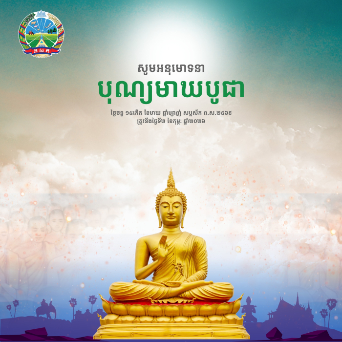 សូមអនុមោទនាបុណ្យ មាឃបូជា ថ្ងៃចន្ទ ១៥កើត ខែមាឃ ឆ្នាំម្សាញ់ សប្តស័ក ពុទ្ធសករាជ ២៥៦៩ ត្រូវនឹងថ្ងៃទី២ ខែកុម្ភៈ ឆ្នាំ២០២៦