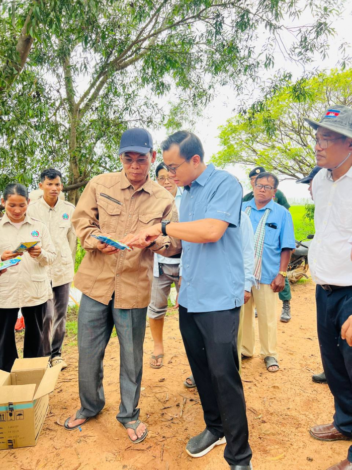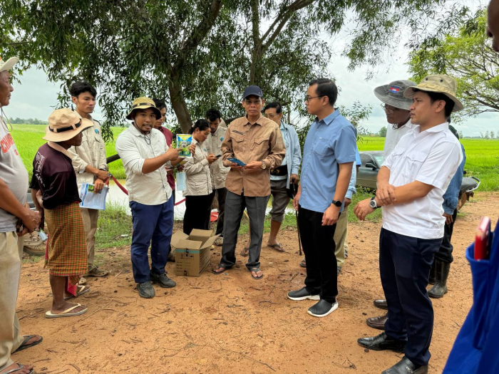 នៅថ្ងៃទី២០ ខែកក្កដា ឆ្នាំ២០២៤ ឯកឧត្តម ប្រាក់ ដាវីដ រដ្ឋលេខាធិការក្រសួងកសិកម្ម រុក្ខាប្រមាញ់ និងនេសាទ បានចុះពិនិត្យវាយតម្លៃស្ថានភាពនៃការបំផ្លាញរបស់រុយសលើដំណាំស្រូវ នៅភូមិត្រពាំងប្រិយ៍ ឃុំភ្នំដី ស្រុកភ្នំស្រុក ខេត្តបន្ទាយមានជ័យ ដោយមានការចូលពីឯកឧត្តម ឃ្លោក នួយ អភិបាលរងខេត្តបន្ទាយមានជ័យ លោកប្រធានមន្ទីរ មន្ត្រីជំនាញ និងអាជ្ញាធរ។