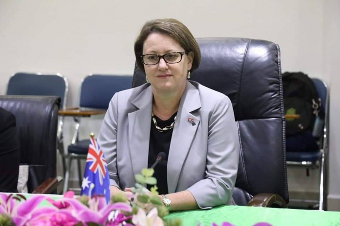 ថ្លែងជូនឯកឧត្តមរដ្ឋមន្រ្តី លោកជំទាវ ឯកអគ្គរដ្ឋទូតបានបញ្ជាក់យ៉ាងច្បាស់ថា រដ្ឋាភិបាលអូស្រ្តាលីនៅតែជាដៃគូសហប្រតិបត្តិការក្នុងការអភិវឌ្ឍវិស័យកសិកម្មយូរអង្វែង រឹងមាំ ជាមួយរាជ រដ្ឋាភិបាលកម្ពុជា និងជាពិសេសជាមួយក្រសួងកសិកម្ម រុក្ខាប្រមាញ់ និងនេសាទជាង ២៥ឆ្នាំមកនេះ ក្នុងគោលបំណងចែករំលែកបទពិសោធន៍ ស្រាវជ្រាវ បណ្តុះបណ្តាលធនធានមនុស្ស ធ្វើការកែទម្រង របៀប និងទម្លាប់ ដើម្បីធ្វើយ៉ាងណាលើកកម្ពស់បរិមាណ និងគុណភាពកសិផល បង្កើតឱកាសឲ្យមានការចូលរួមក្នុងការងារកសិធុរកិច្ចប្រកបដោយផែនការ និងទិសដៅច្បាស់លាស់។ នាឱកាសនេះ លោកជំទាវក៏បានគូសបញ្ជាក់ពីសមិទ្ធផលសំខាន់ៗដែលអង្គការ AusAID សហការអនុវត្តគម្រោងនានាទាក់ទងវិស័យកសិកម្មជាមួយក្រសួង ក្នុងនោះលេចធ្លោជាងគេគឺ គម្រោង CAVAC ដែលកំពុងអនុវត្តជំហានទី២។ លោកជំទាវសង្ឃឹម និងជឿជាក់ថា ACIAR នឹងចូលរួមចំណែកយ៉ាងពេញលេញក្នុងការចូលរួមអភិវឌ្ឍន៍វិស័យកសិកម្មកម្ពុជានាពេលអនាគតដ៏ខ្លី ហើយរដ្ឋាភិបាលអូស្រ្តាលីនឹងនៅតែបន្តធ្វើជាដៃគូយ៉ាងជិតស្និទ្ធជាមួយរាជរដ្ឋាភិបាលកម្ពុជាក្នុងការអភិវឌ្ឍប្រទេស ជាពិសេសក្នុងវិស័យកសិកម្មឲ្យមានការរីកចម្រើនថែមទៀត។