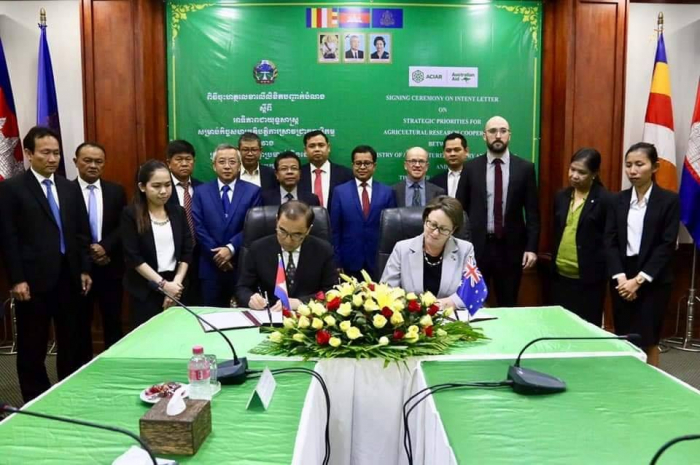 នៅទីស្តីការក្រសួងកសិកម្ម រុក្ខាប្រមាញ់ និងនេសាទ នាព្រឹកអង្គារ ៩កើត ខែកត្តិក ឆ្នាំកុរ ឯកស័ក ព.ស. ២៥៦៣ ត្រូវនឹងថ្ងៃទី៥ ខែវិច្ឆិកា ឆ្នាំ២០១៩ បានរៀបចំពិធីចុះហត្ថលេខាលើលិខិតបញ្ជាក់បំណងស្តីពី "អាទិភាពជាយុទ្ធសាស្រ្តស្រាប់កិច្ចសហប្រតិបត្តិការស្រាវជ្រាវកសិកម្ម" រវាងក្រសួងកសិកម្ម រុក្ខាប្រមាញ់ និងនេសាទ ជាមួយមជ្ឈមណ្ឌលអូស្រ្តាលី សម្រាប់ការស្រាវជ្រាវកសិកម្មអន្តរជាតិ (Australian Center for International Agricultural Research, ACIAR)
