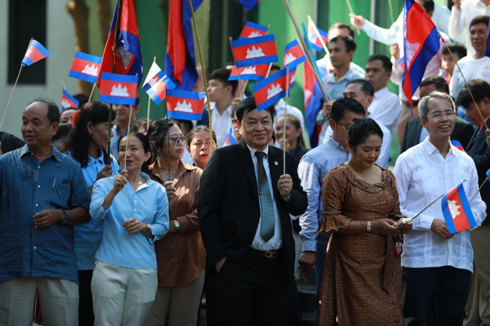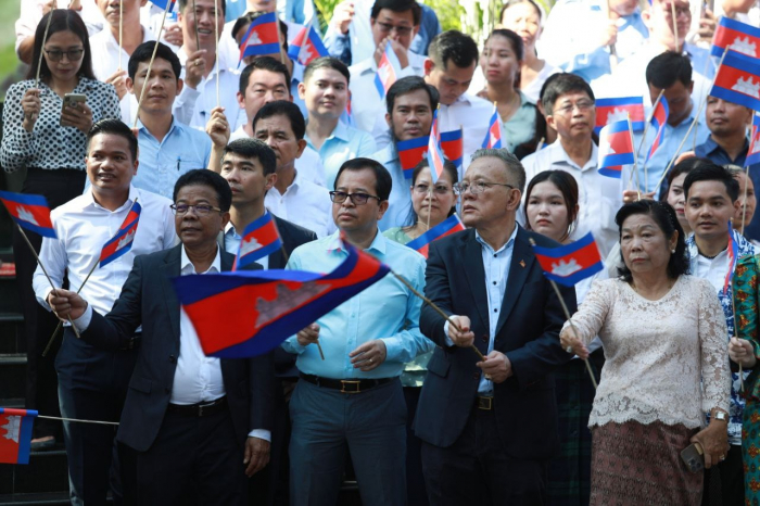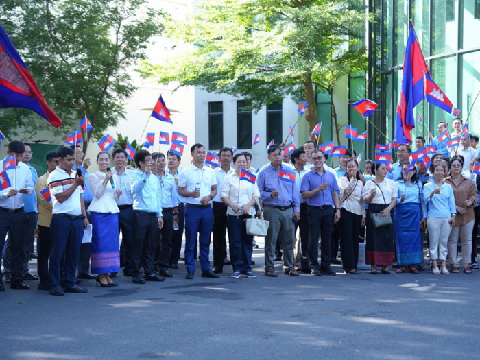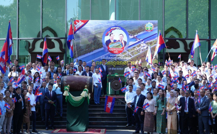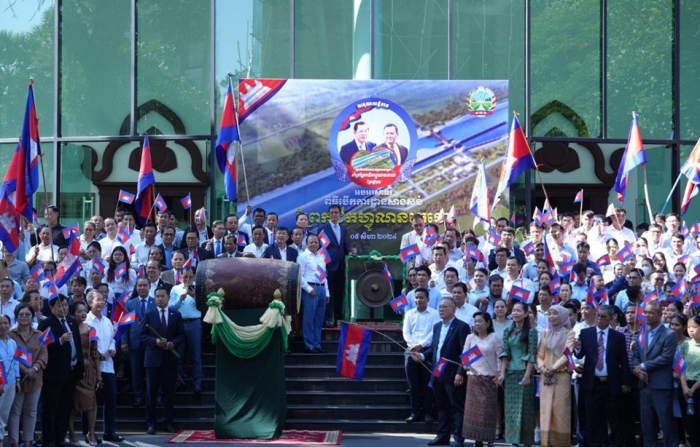 នាព្រឹកថ្ងៃចន្ទ ទី៥ ខែសីហា ឆ្នាំ២០២៤ នៅទីស្តីការក្រសួងកសិកម្ម រុក្ខាប្រមាញ់ និងនេសាទ ថ្នាក់ដឹកនាំ និងមន្ត្រីរាជការ នៃក្រសួងកសិកម្ម រុក្ខាប្រមាញ់ និងនេសាទ បានចូលរួមអបអរសាទរពិធីបើកការដ្ឋានសាងសង់ “ព្រែកជីកហ្វូណនតេជោ“ ដោយបានវាយជួង ទូងស្គរ ដើម្បីអបអរសាទរនូវសមិទ្ធផលប្រវត្តិសាស្ត្រ នេះ។