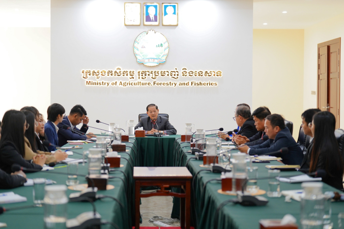 នាព្រឹកថ្ងៃទី១៧ ខែធ្នូ ឆ្នាំ២០២៥ ឯកឧត្តម ចាន់ សុវុឌ្ឍ រដ្ឋលេខាធិការក្រសួងកសិកម្ម រុក្ខាប្រមាញ់ និងនេសាទ បានអញ្ជើញទទួលជួបក្រុមនិស្សិតជ័យលាភីអាហារូបករណ៍របស់រដ្ឋាភិបាលប្រទេសនូវែលសេឡង់ ដើម្បីសុំបទពិសោធន៍ និងអនុសាសន៍ណែនាំពីថ្នាក់ដឹកនាំក្រសួង មុនចេញទៅបន្តការសិក្សាក្រៅប្រទេស នៅទីស្តីការក្រសួងកសិកម្ម រុក្ខាប្រមាញ់ និងនេសាទ។