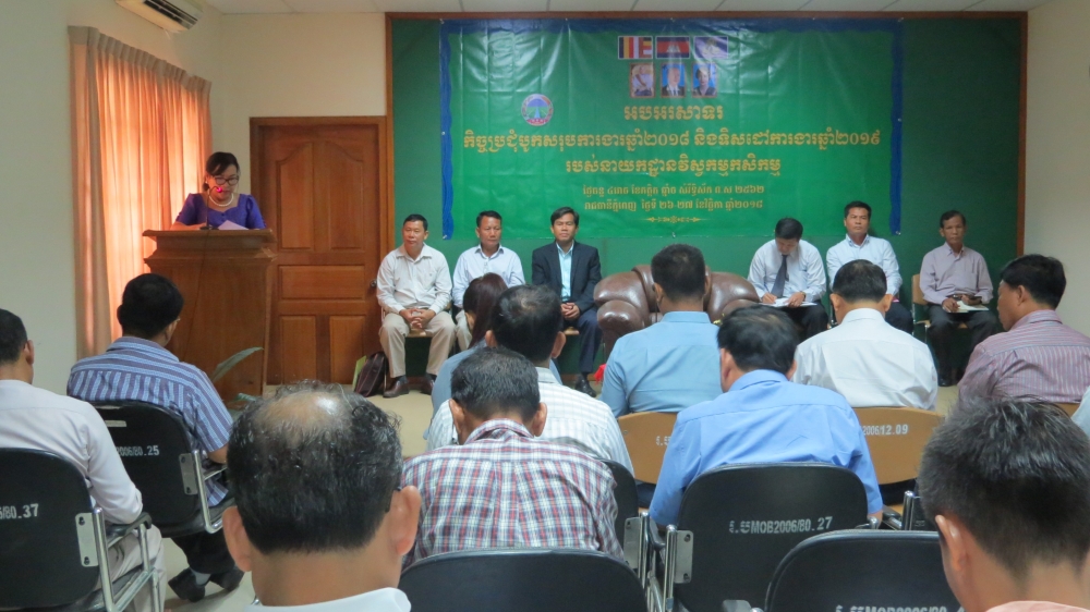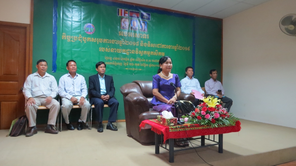 កាលថ្ងៃទី២៦ ដល់ ថ្ងៃទី២៧ ខែ​វិច្ឆិកា ឆ្នាំ២០១៨ នាយកដ្ឋានវិស្វកម្មកសិកម្មនៃអគ្គនាយកដ្ឋានកសិកម្មបានរៀបកិច្ចប្រជុំបូកសរុប​ការងារ​ឆ្នាំ​២០១៨ និង​ទិសដៅ​ការងារ​ឆ្នាំ​២០១៩ របស់​នាយកដ្ឋានវិស្វកម្មកសិកម្ម ក្រោមអធិបតីភាពលោកជំទាវ ចាន់ ផលលឿន អនុរដ្ឋលេខាធិការក្រសួងកសិកម្ម រុក្ខាប្រមាញ់ និងនេសាទ និង​មាន​ការ​អញ្ជើញ​ចូលរួម​ពី​ថ្នាក់ដឹកនាំ​​ក្រសួងកសិកម្ម រុក្ខាប្រមាញ់ និងនេសាទ ថ្នាក់ដឹកនាំអគ្គនាយកដ្ឋាន​កសិកម្ម ថ្នាក់ដឹកនាំ​នាយកដ្ឋានក្រោមឱវាទអគ្គនាយកដ្ឋានកសិកម្ម ថ្នាក់ដឹកនាំនិងមន្ត្រី​នាយកដ្ឋាន​វិស្វកម្មកសិកម្ម និងប្រធាន​ឬតំណាងការិយាល័យវិស្វកម្ម​កសិកម្មរបស់មន្ទីរកសិកម្ម រុក្ខាប្រមាញ់ និងនេសាទ​រាជធានី-ខេត្តនិងអ្នកពាក់ព័ន្ធសរុបចំនួន ៧០នាក់។ គោលបំណងនៃកិច្ចប្រជុំខាងលើធ្វើឡើងដើម្បី៖