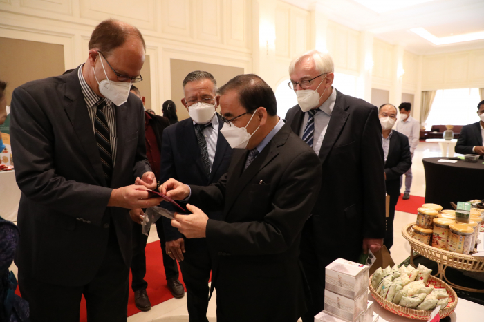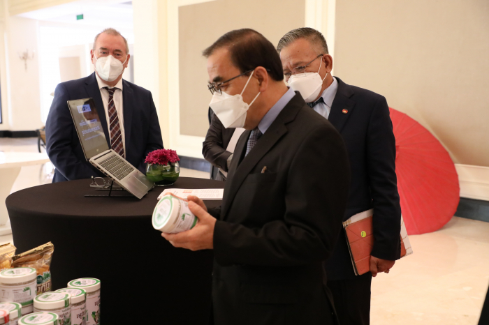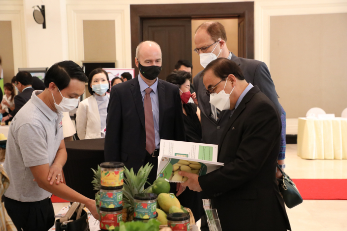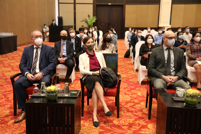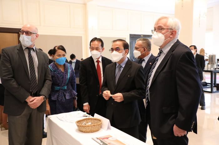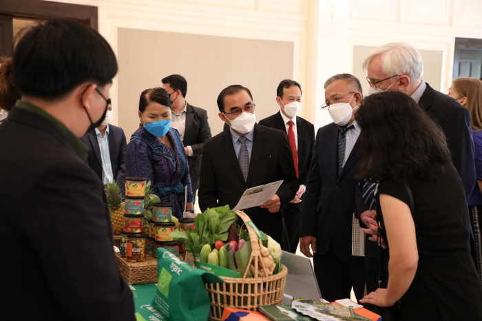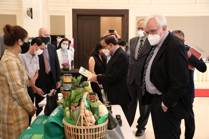 នៅសណ្ឋាគារ សូហ្វីតែល នាព្រឹកថ្ងៃព្រហស្បតិ៍ ៦កើត ខែចេត្រ ឆ្នាំឆ្លូវ ត្រីស័ក ព.ស. ២៥៦៥ ត្រូវនឹងថ្ងៃទី៧ ខែមេសា ឆ្នាំ២០២២ ឯកឧត្តម វេង សាខុន រដ្ឋមន្ត្រីក្រសួងកសិកម្ម រុក្ខាប្រមាញ់ និងនេសាទ និងឯកឧត្តម Christian Berger ឯកអគ្គរដ្ឋទូតនៃសាធារណរដ្ឋសហព័ន្ធអាល្លឺម៉ង់ បានអញ្ជើញជាអធិបតីក្នុងពិធីបើកសិក្ខាសាលាស្តីពី "ការគាំទ្រនៃកិច្ចសហប្រតិបត្តិការអភិវឌ្ឍន៍អាល្លឺម៉ង់ក្នុងវិស័យកសិកម្មនៅប្រទេសកម្ពុជា និងការផ្សព្វផ្សាយគោលការណ៍ណែនាំសម្រាប់នាំចេញផ្លែឈើស្រស់ទៅកាន់ប្រទេសចិន"។ សិក្ខាសាលាដ៏មានសារ:សំខាន់នេះ ក៏មានវត្តមានឯកឧត្តមថ្នាក់ដឹកនាំក្រសួងកសិកម្ម រុក្ខាប្រមាញ់ៗនិងនេសាទ បណ្ឌិត Günter Riethmacher នាយកទីភ្នាក់ងារអភិវឌ្ឍអាល្លឺម៉ង់ ជី អាយ ហ្សិត (GIZ) ប្រចាំកម្ពុជា ដៃគូអភិវឌ្ឍន៍ វិស័យឯកជន សហគមន៍កសិកម្ម និងមន្រ្តីជំនាញយ៉ាងច្រើនកុះករ។ ឯកឧត្តម ងិន ឆាយ ប្រតិភូរាជរដ្ឋាភិបាលទទួលបន្ទុកជាអគ្គនាយកនៃអគ្គនាយកដ្ឋានកសិកម្ម បានសង្ខេបជូនអង្គសិក្ខាសាលាអំពីកម្មវត្ថុរបស់សិក្ខាសាលា សក្តានុពលផ្លែឈើត្រូពិចកម្ពុជាសម្រាប់នាំចេញទៅកាន់ទីផ្សារអន្តរជាតិជារួម និងដោយឡែកទីផ្សារចិន លក្ខខណ្ឌតម្រូវភូតគាមអនាម័យសម្រាប់ការនាំចេញ និងលក្ខខណ្ឌ ឬគោលការណ៍ចាំបាច់មួយចំនួនទៀតដែលតម្រូវឲ្យក្រុមហ៊ុននាំចេញបំពេញ ហើយសិក្ខាសាលានាព្រឹកនេះនឹងបង្ហាញជូននូវលក្ខខណ្ឌសំខាន់ៗទាំងនោះជូនសិក្ខាកាម ដែលជាសំណុំធាតុចូលដ៏សំខាន់សម្រាប់វិស័យឯកជនយកទៅអនុវត្ត។ ដោយឡែក ឯកឧត្តម Christian Berger និងបណ្ឌិត Günter Riethmacher ក៏បានធ្វើចំណាប់អារម្មណ៍ជុំវិញសក្តានុពលវិស័យកសិកម្មកម្ពុជាសម្រាប់ធ្វើការនាំចេញ កិច្ចសហប្រតិបត្តិការអភិវឌ្ឍន៍អាល្លឺម៉ង់ក្នុងវិស័យកសិកម្មក្នុងបរិបទនៃវិបត្តិជំងឺកូវីដ-១៩ សមិទ្ធផលសំខាន់ៗដែល giz សម្រេចបាន និងទិសដៅអនាគតរបស់ giz ក្នុងការគាំទ្រ និងជំរុញដល់ការនាំចេញកសិផលកម្ពុជាទៅកាន់ទីផ្សារអន្តរជាតិ និងជាពិសេសទីផ្សារចិន។ល។ ឯកឧត្តមរដ្ឋមន្ត្រីបានថ្លែងអំណរគុណ និងវាយតម្លៃខ្ពស់ចំពោះវត្តមានឯកឧត្តមឯកអគ្គរដ្ឋទូត បណ្ឌិត Günter Riethmacher ដៃគូអភិវឌ្ឍន៍ និងវិស័យឯកជនក្នុងពិធីបើកសិក្ខាសាលា ដែលបានរៀបចំឡើងក្រោមកិច្ចសហការរវាងក្រសួងកសិកម្ម រុក្ខាប្រមាញ់ និងនេសាទ និងទីភ្នាក់ងារសហប្រតិបត្តិការអាល្លឺម៉ង់ (GIZ)។ លទ្ធផលជាផ្លែផ្កានៃកិច្ចសហប្រតិបត្តិការដែលបានគូស បញ្ជាក់ដោយបណ្ឌិត Günter Riethmacher និងឯកឧត្តមឯកអគ្គរដ្ឋ ពិតជាឆ្លើយតបទៅនឹងអភិក្រម “រដ្ឋ-ឯកជន-ដៃគូអភិវឌ្ឍន៍ និងសហគមន៍” ក្នុងការរួមចំណែកបង្កើនផលិតភាព ពិពិធកសិកម្ម និងពាណិជ្ជូបនីយកម្មកសិកម្ម រួមចំណែកលើកស្ទួយវិស័យកសិកម្ម ធានាសន្តិសុខស្បៀង ការកាត់បន្ថយភាពក្រីក្រ អភិវឌ្ឍ