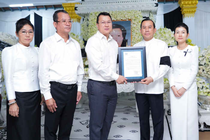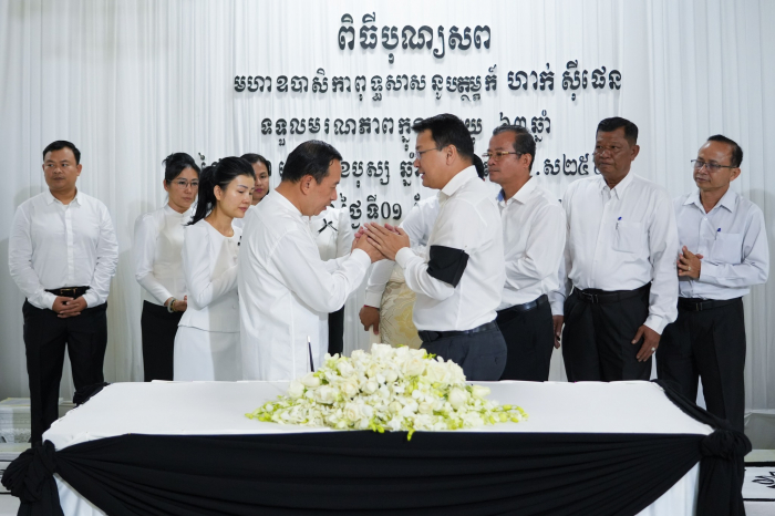នាល្ងាចថ្ងៃសុក្រ ទី៣ ខែមករា ឆ្នាំ២០២៥ ឯកឧត្តម ឌិត ទីណា រដ្ឋមន្រ្ដីក្រសួងកសិកម្ម រុក្ខាប្រមាញ់ និងនេសាទ បានដឹកនាំគណៈប្រតិភូក្រសួង អញ្ជើញចូលរួមគោរពវិញ្ញាណក្ខន្ធសព មហាឧបាសិកាពុទ្ធសាសនូបត្ថម្ភក៍ ហាក់ ស៊ីផេន ដែលបានទទួលមរណភាព ក្នុងជន្មាយុ៦៣ឆ្នាំ ដោយរោគាពាធ។