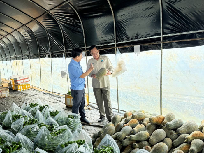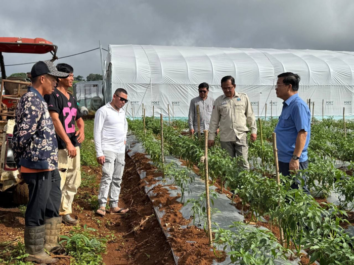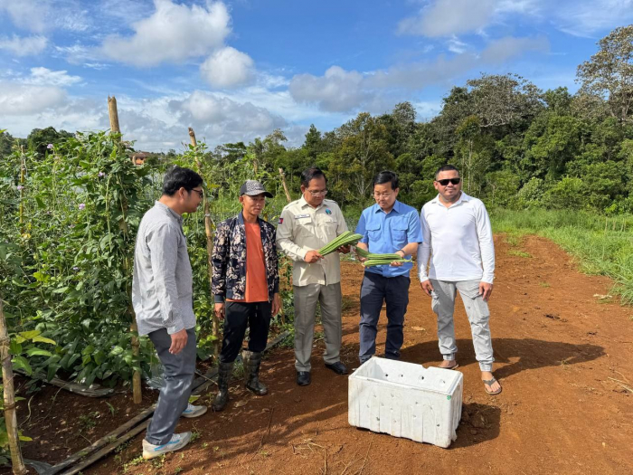 នៅថ្ងៃទី១២ ខែកញ្ញា ឆ្នាំ២០២៥ ឯកឧត្ដម អ៊ួង កុសល រដ្ឋលេខាធិការក្រសួងកសិកម្ម រុក្ខាប្រមាញ់ និងនេសាទ អមដំណើរដោយលោក សុង ឃាង ប្រធានមន្ទីរកសិកម្ម លោកអនុប្រធានមន្ទីរ លោកប្រធានការិយាល័យក្សេត្រសាស្ត្រ និងផលិតភាពកសិកម្ម និងសហការី បានចុះពិនិត្យមើលការដាំបន្លែរបស់កសិករ Wang Lie Lie (ជនជាតិចិន) ដែលបានដាំដុះបន្លែលើផ្ទៃដី ចំនួន ១០ហិកតា ដោយដាំក្នុងផ្ទះសំណាញ់ ចំនួន ៤០ខ្នង មានដូចជា៖ ត្រសក់ ម្ទេស ត្រប់ ល្ពៅ ននោង សណ្ដែកគួរ និងដំណាំរួមផ្សំផ្សេងទៀត ស្ថិតនៅភូមិពូលូង សង្កាត់មនោរម្យ ក្រុងសែនមនោរម្យ ខេត្តមណ្ឌលគិរី។