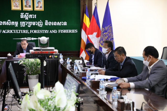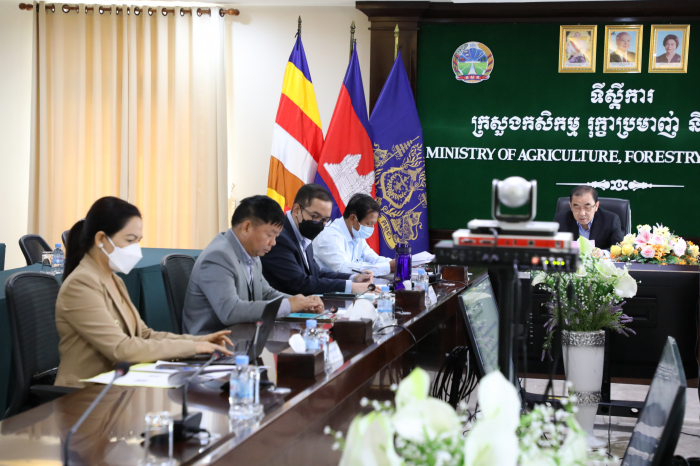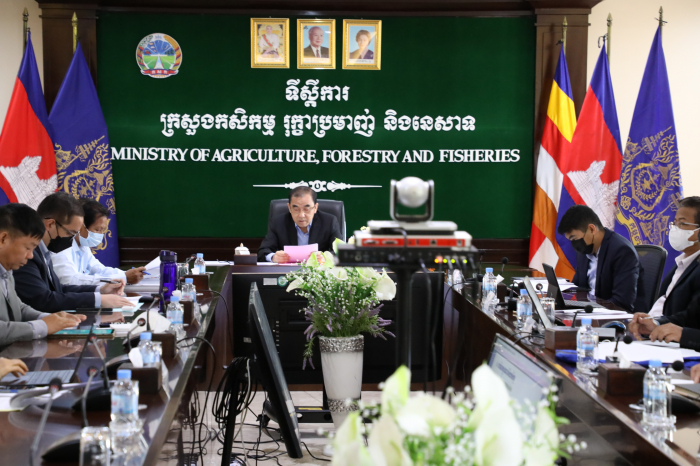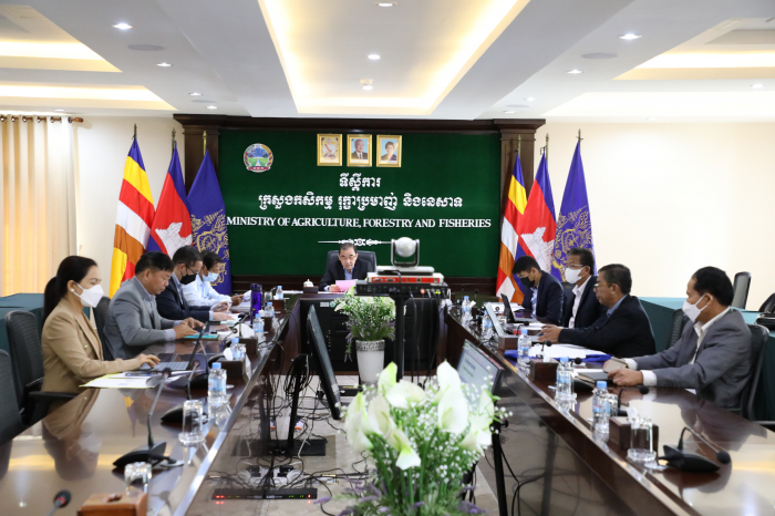 នៅទីស្តីការក្រសួងកសិកម្ម រុក្ខាប្រមាញ់ និងនេសាទ នាវេលាម៉ោង ៩:00 ព្រឹកថ្ងៃអង្គារ ១២រោច ខែផល្គុន ឆ្នាំឆ្លូវ ត្រីស័ក ព.ស. ២៥៦៥ ត្រូវនឹងថ្ងៃទី២៩ ខែមីនា ឆ្នាំ២០២២ ឯកឧត្តមរដ្ឋមន្ត្រី វេង សាខុន បានដឹកនាំក្រុមការងារជំនាញមានឯកឧត្តមរដ្ឋលេខាធិការ អនុរដ្ឋលេខាធិការ ឯកឧត្តមទីប្រឹក្សា ឯកឧត្តមអគ្គលេខាធិការ ចូលរួមក្នុងកិច្ចប្រជុំដ៏មានសារ:សំខាន់ដើម្បីពិនិត្យ ពិភាក្សា និងផ្តល់យោបល់លើសេចក្តីព្រាងចុងក្រោយស្តីពី "គោលនយោបាយអភិវឌ្ឍន៍វិស័យកសិកម្មឆ្នាំ២០២១- ២០៣០" ជាមួយក្រសួងសេដ្ឋកិច្ច និងហិរញ្ញវត្ថុ (តាមរយ: Zoom) ដែលកិច្ចប្រជុំនេះដឹកនាំដោយឯកឧត្តមអគ្គបណ្ឌិតសុភាចារ្យ អូន ព័ន្ធមុនីរ័ត្ន ឧបនាយករដ្ឋមន្រ្តី រដ្ឋមន្រ្តីក្រសួងសេដកិច្ច និងហិរញ្ញវត្ថុ និងជាប្រធានគណ:កម្មាធិការគោលនយោបាយសេដ្ឋកិច្ច និងហិរញ្ញវត្ថុ។ ក្នុងកិច្ចប្រជុំដ៏មានសារ:សំខាន់នេះ ក៏មានការអញ្ជើញចូលរួមពីឯកឧត្តមរដ្ឋមន្រ្តី ឬតំណាងមកពីក្រសួង និងស្ថាប័នពាក់ព័ន្ធជាអាទិ៍៖ ក្រសួងអភិវឌ្ឍន៍ជនបទ ក្រសួងពាណិជ្ជកម្ម ក្រសួងរ៉ែ និងថាមពល ក្រសួងអប់រំ យុវជន និងកីឡា ក្រសួងសង្គមកិច្ច អតីតយុទ្ធជន និងយុវនីតិសម្បទា ក្រសួងបរិស្ថាន ក្រសួងធនធានទឹក និងឧតុនិយម ក្រសួងព័ត៌មាន ក្រសួងសុខា ភិបាល ក្រសួងទេសចរណ៍ ក្រសួងកិច្ចការនារី ក្រសួងការងារ និងបណ្តុះបណ្តាលវិជ្ជាជីវ: ក្រសួងយុត្តិធម៌ ក្រសួងប្រៃសណីយ៍ និងទូរគមនាគមន៍ និងក្រសួងមុខងារសាធារណ:។ បន្ទាប់ពីឯកឧត្តមអគ្គបណ្ឌិតសុភាចារ្យ អូន ព័ន្ធមុនីរ័ត្ន បានអានសេចក្តីថ្លែងហេតុរួចមក ឯកឧត្តមរដ្ឋមន្ត្រី វេង សាខុន ក្នុងនាមជាម្ចាស់សាមីនៃឯកសារសេចក្តីព្រាង និងជាអ្នកអនុវត្តគោលនយោ បាយអភិវឌ្ឍន៍វិស័យកសិកម្មឆ្នាំ២០២១-២០៣០ បានសម្តែងនូវគារវកិច្ច និងថ្លែងអំណរគុណជូនចំពោះវត្តមានរបស់ឯកឧត្តមអគ្គបណ្ឌិតសភាចារ្យ ព្រមទាំងឯកឧត្តម លោកជំទាវជាសមាជិក សមាជិកានៃអង្គប្រជុំទាំងមូលដែលបានឆ្លៀតឱកាសដ៏មានតម្លៃអញ្ជើញដឹកនាំ និងចូលរួមក្នុងកិច្ចប្រជុំដើម្បីពិនិត្យ ពិភាក្សា និងផ្តល់យោបល់លើសេចក្តីព្រាងគោលនយោបាយនេះ។ បន្ទាប់ មក ឯកឧត្តមរដ្ឋមន្ត្រីបានធ្វើបទបង្ហាញ ជូនអង្គប្រជុំអំពីគោលបំណងនៃគោលនយោបាយគឺ "ជំរុញកំណើនកសិកម្ម ប្រកបដោយភាពប្រកួតប្រជែង និងបរិយាប័ន្ន ដែលផ្តល់នូវផលិតផលមានគុណភាពខ្ពស់ សុវត្ថិភាព និងអាហារូបត្ថម្ភ ដោយត្រូវគិតគូរខ្ពស់ដល់ការគ្រប់គ្រងដីធ្លីកសិកម្ម ទឹក ធនធានព្រៃឈើ ជលផល និងធានាសន្តិសុខស្បៀង ប្រកបដោយនិរន្តរភាព"។ ដំណើរការនៃការរៀបចំគោលនយោបាយអភិវឌ្ឍន៍វិស័យកសិកម្ម ឆ្នាំ២០២១-២០៣០ ស្ថានភាពជារួមនៃវិស័យកសិកម្ម វឌ្ឍនភាព បញ្ហាប្រឈម ចក្ខុវិស័យសម្រាប់ការ អភិវឌ្ឍន៍វិស