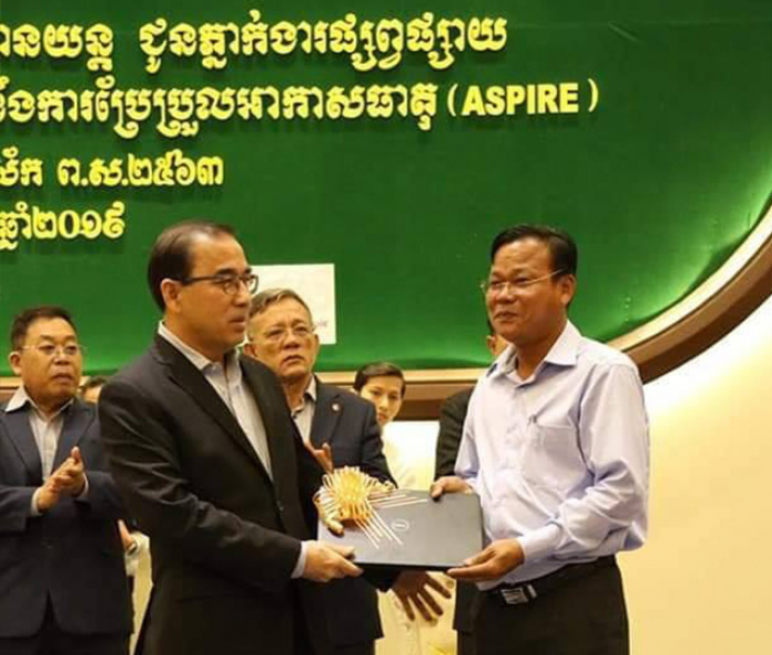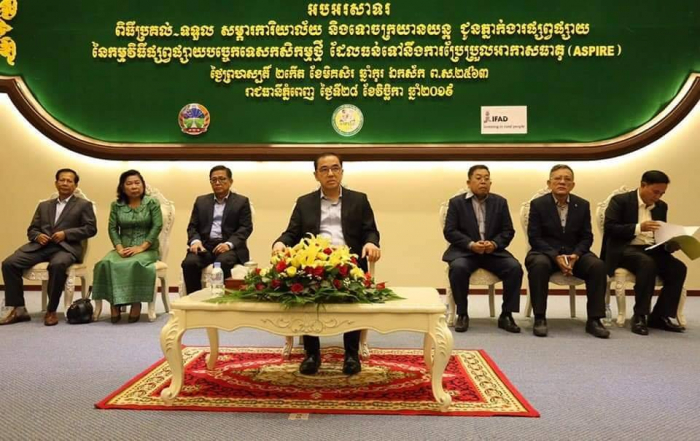 នៅទីស្តីការក្រសួងកសិកម្ម រុក្ខាប្រមាញ់ និងនេសាទ នារសៀលថ្ងៃព្រហស្បតិ៍ ២កើត ខែមិគសិរ ឆ្នាំកុរ ឯកស័ក ព.ស. ២៥៦៣ ត្រូវនឹងថ្ងៃទី២៨ ខែវិច្ឆិកា ឆ្នាំ២០១៩ បានរៀបចំពិធីចែកទោចក្រយានយន្ត កុំព្យូទ័រ និងសម្ភារការិយាល័យជូនភ្នាក់ងារផ្សព្វផ្សាយ និងអង្គភាពអនុវត្តកម្មវិធីស្តីពី "ការផ្សព្វ ផ្សាយបច្ចេកទេសកសិកម្មថ្មី ដែលធន់ទៅនឹងការប្រែប្រួលអាកាសធាតុ" ហៅកាត់ថា ASPIRE ដែលពិធីនេះស្ថិតក្រោមអធិបតីភាពឯកឧត្តមរដ្ឋមន្ត្រី វេង សាខុន និងមានការចូលរួម ពីឯកឧត្តម លោកជំទាវថ្នាក់ដឹកនាំក្រសួង តំណាងអង្គការ IFAD នាយកគម្រោង មន្រ្តីអនុវត្តគម្រោង ប្រធានមន្ទីរកសិកម្ម រុក្ខាប្រមាញ់ និងនេសាទនៃខេត្តគោលដៅ។