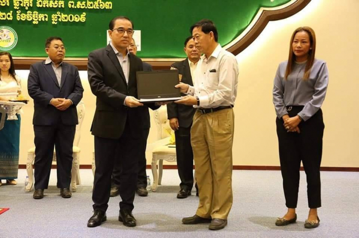 ពិធីចែកទោចក្រយានយន្ត កុំព្យូទ័រ និងសម្ភារការិយាល័យជូនភ្នាក់ងារផ្សព្វផ្សាយ និងអង្គភាពអនុវត្តកម្មវិធីស្តីពី "ការផ្សព្វ ផ្សាយបច្ចេកទេសកសិកម្មថ្មី ដែលធន់ទៅនឹងការប្រែប្រួលអាកាសធាតុ" ហៅកាត់ថា ASPIRE ដែលពិធីនេះស្ថិតក្រោមអធិបតីភាពឯកឧត្តមរដ្ឋមន្ត្រី វេង សាខុន