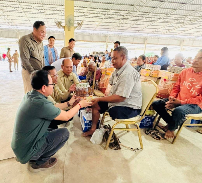 នាព្រឹកថ្ងៃទី៣១ ខែកក្កដា ឆ្នាំ២០២៥ ឯកឧត្តម ស្រី វុឌ្ឍី អនុរដ្ឋលេខាធិការ ក្រសួងកសិកម្ម រុក្ខាប្រមាញ់ និងនេសាទ ជាតំណាងដ៏ខ្ពង់ខ្ពស់ឯកឧត្តមរដ្ឋមន្រ្តី ឌិត ទីណា និងជាប្រធានក្រុមការងាររាជរដ្ឋាភិបាលចុះមូលដ្ឋានស្រុកមង្គលបូរី និងលោក ឃូ ពៅ អភិបាលរងខេត្តបន្ទាយមានជ័យ បានបន្តដឹកនាំក្រុមការងារ ព្រមទាំងសហការី ក្រុមការងារថ្នាក់ជាតិ ថ្នាក់ខេត្ត ថ្នាក់ស្រុក ភូមិឃុំ និងក្រុមយុវជនស.ស.យ.ក ស្រុកមង្គលបូរី អញ្ជើញចុះសួរសុខទុក្ខ និងនាំយកអំណោយ ដែលរួមមាន៖ គ្រឿងបរិភោគ និងសម្ភារប្រើប្រាស់ជាច្រើន ជូនដល់បងប្អូនភៀសសឹកចំនួន៣៧៦គ្រួសារ ដែលបានជម្លៀសមកទីតាំងមានសុវត្ថិភាព ដែលកំពុងស្នាក់នៅតាមផ្ទះបងប្អូនប្រជាពលរដ្ឋ និងផ្សារចំការតាដោក ស្រុកមង្គលបូរី ខេត្តបន្ទាយមានជ័យ៕