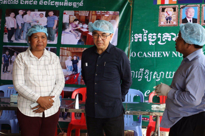 ឯកឧត្តមរដ្ឋមន្ត្រី បានបន្តដំណើរមកពិនិត្យសកម្មភាពកែច្នៃគ្រាប់ស្វាយចន្ទីរបស់សិប្បកម្មកែច្នៃគ្រាប់ស្វាយចន្ទី ជ័យ សំបូរ