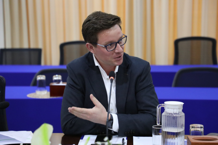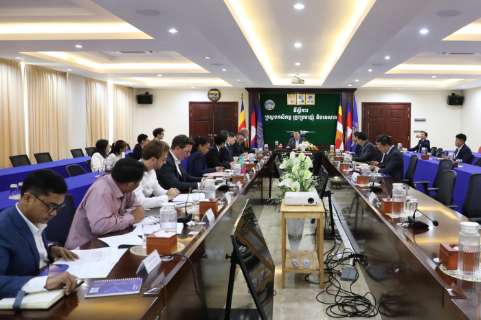 នៅព្រឹកថ្ងៃទី២៧ ខែមីនា ឆ្នាំ២០២៣ ឯកឧត្តម ឌិត ទីណា រដ្ឋមន្ត្រី ក្រសួងកសិកម្ម រុក្ខាប្រមាញ់ និងនេសាទ និងថ្នាក់ដឹកនាំ បានជួបពិភាក្សាការងារជាមួយលោក Tassilo Brinzer ប្រធានសភាពាណិជ្ជកម្មអឺរ៉ុប (EuroCham) ប្រចាំនៅព្រះរាជាណាចក្រកម្ពុជា និងសហការី នៅទីស្តីការក្រសួងកសិកម្ម រុក្ខាប្រមាញ់ និងនេសាទ។