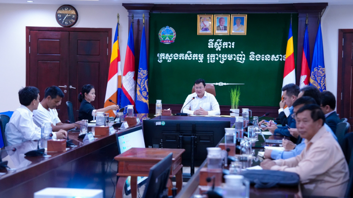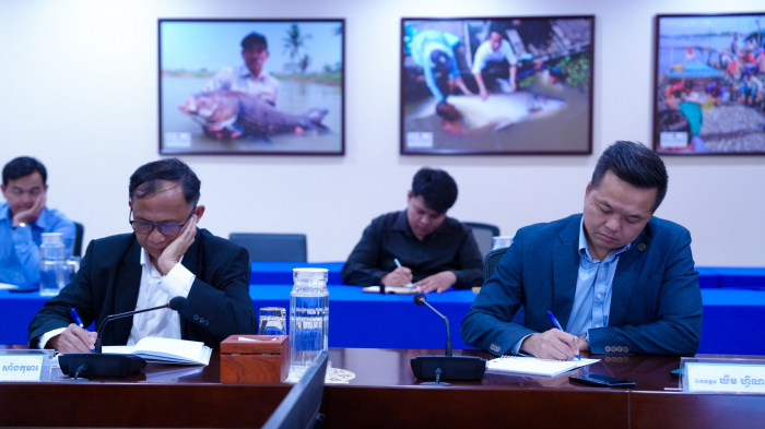 នៅរសៀលថ្ងៃទី០២ ខែកញ្ញា ឆ្នាំ២០២៣ ឯកឧត្តម ឌិត ទីណា រដ្ឋមន្ត្រីក្រសួងកសិកម្ម រុក្ខាប្រមាញ់ និងនេសាទ និងថ្នាក់ដឹកនាំ បានចូលរួមស្តាប់បទបង្ហាញរបស់ក្រុមហ៊ុនសូឡា ហ្គ្រីន អេនេីជី (ខេមបូឌា) ខូអិលធីឌី ស្តីពីស្ថានីយបូមទឹកដេីរដោយពន្លឺព្រះអាទិត្យ និងម៉ូឌែលធុរកិច្ចនៃសេវាកម្មផ្គត់ផ្គង់ទឹកសម្រាប់ស្រូវប្រាំង នៅទីស្តីការក្រសួងកសិកម្ម រុក្ខាប្រមាញ់ និងនេសាទ។