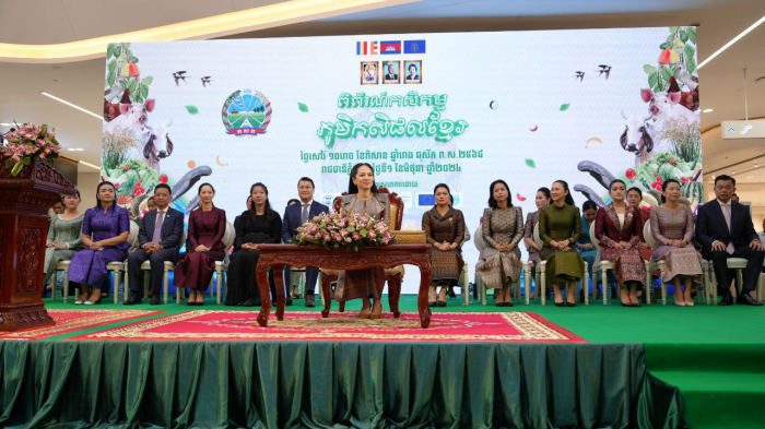 ទិដ្ឋភាពពិព័រណ៍កសិកម្ម ភូមិកសិផលខ្មែរដែលប្រព្រឹត្តិទៅក្រោមអធិបតីភាព លោកជំទាវបណ្ឌិត ពេជ ចន្ទមុន្នី ហ៊ុនម៉ាណែត នាថ្ងៃសៅរ ទី១ ខែមិថុនា ឆ្នាំ២០២៤ នៅផ្សារទំនើបជីបម៉ុង271 មេហ្គាម៉ល