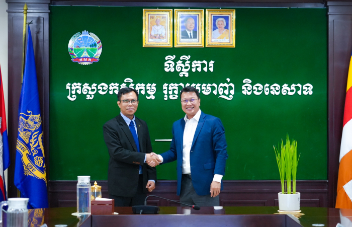 នារសៀលថ្ងៃទី៦ ខែមិថុនា ឆ្នាំ២០២៥ ឯកឧត្តម ឌិត ទីណា រដ្ឋមន្ត្រីក្រសួងកសិកម្ម រុក្ខាប្រមាញ់ និងនេសាទ បានទទួលជួបពិភាក្សាការងារជាមួយលោក ឌិត សុចល នាយកប្រតិបត្តិធនាគារពាណិជ្ជក្រៅប្រទេសនៃកម្ពុជា(FTB) និងសហការី នៅទីស្តីការក្រសួងកសិកម្ម រុក្ខាប្រមាញ់ និងនេសាទ។