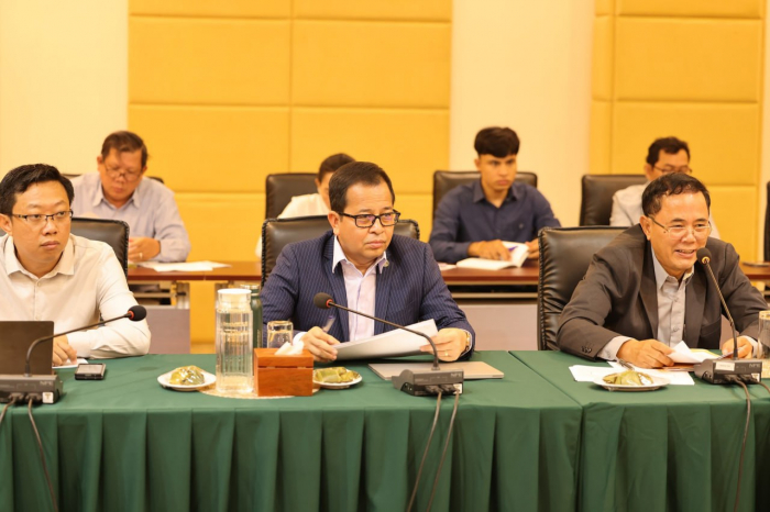 ឯកឧត្តម មាស ពិសិដ្ឋ អនុរដ្ឋលេខាធិការក្រសួងកសិកម្ម និងជានាយកកម្មវិធី ASPIRE-AT តំណាងដ៏ខ្ពង់ខ្ពស់ពីឯកឧត្តមរដ្ឋមន្ត្រី ឌិត ទីណា បានដឹកនាំក្រុមការងារ និងមន្ត្រីជំនាញ ជួបពិភាក្សាជាមួយអ្នកឯកទេសផ្នែកធនធានធម្មជាតិ និងកសិកម្ម និងជាតំណាងធនាគារអភិវឌ្ឍន៍អាស៊ី (ADB) ដើម្បីរៀបចំឯកសារទស្សនទានសម្រាប់រៀបចំគម្រោង “ពន្លឿនការកែទម្រង់វិស័យកសិកម្ម” នៅទីស្តីការក្រសួងកសិកម្ម។ កិច្ចពិភាក្សានោះក៏មានការចូលរួមពីមន្ត្រីនៃសាជីវកម្មធានាឥណទានកម្ពុជា (CGCC) ផងដែរ។