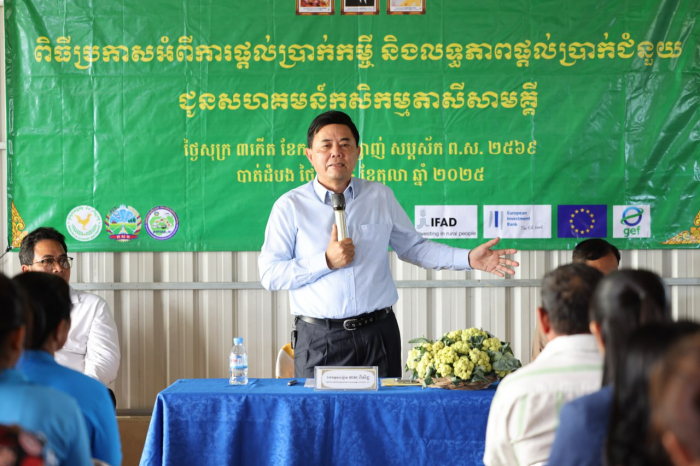 ឯកឧត្តម បណ្ឌិត មាស ពិសិដ្ឋ រដ្ឋលេខាធិការក្រសួងកសិកម្ម រុក្ខាប្រមាញ់ និងនេសាទ និងជានាយកកម្មវិធីគាំទ្រសេដ្ឋកិច្ចជនបទ និងពាណិជ្ជកម្មផលិតផលកសិកម្ម (ASPIRE-AT) បានអញ្ជើញជាអធិបតីក្នុងពិធីសំណេះសំណាល ជាមួយអ្នកគ្រប់គ្រង និងសមាជិកសហគមន៍កសិកម្មតាសីសាមគ្គី ខេត្តបាត់ដំបង អំពី “ លទ្ធភាពរបស់សហគមន៍កសិកម្ម ក្រុមហ៊ុនកសិកម្ម និងកសិករ ក្នុងការខ្ចីប្រាក់ធ្វើដើមទុន ព្រមទាំងលទ្ធភាពទទួលបានប្រាក់ជំនួយ ”