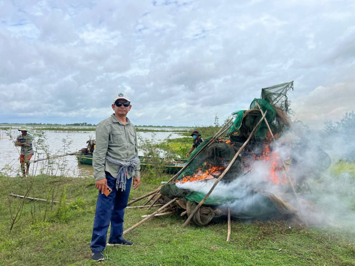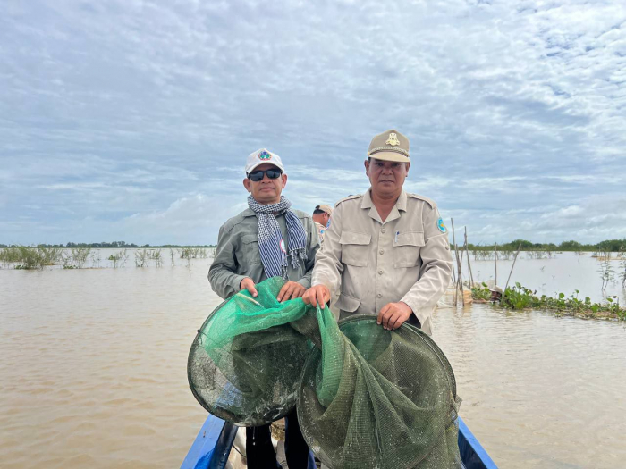 ឯកឧត្តមអនុរដ្ឋលេខាធិការ ទឹម បូរក្ស អញ្ជើញដឹកនាំកម្លាំង​ចម្រុះចុះ​ត្រួត​ពិនិត្យ ទប់ស្កាត់ និងបង្ក្រាបបទល្មើសជលផល នៅក្នុងរដូវបិទនេសាទ នៅភូមិសាស្ត្រមួយចំនួនក្នុងស្រុកបាភ្នំ ខេត្តព្រៃវែង
